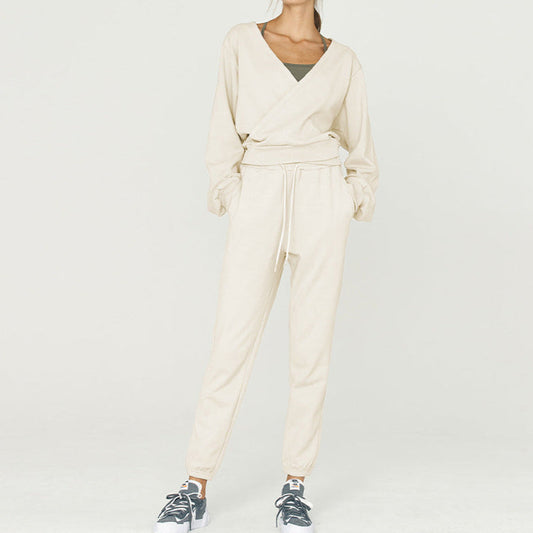 Vネックのワッフル生地ゆったりヨガトップ 2284