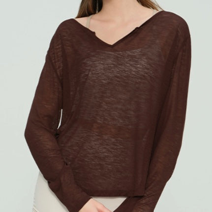 スラブヤーン Vネック クールビーズ ヨガトップス 2421