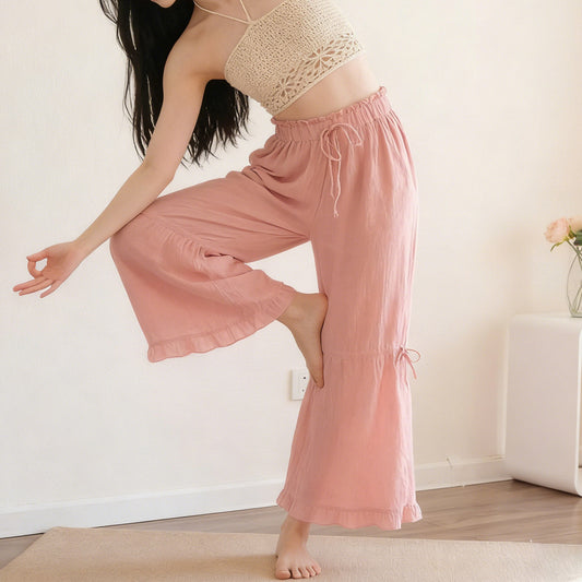 リラクシーリゾート綿100%ドロストフリルワイドパンツ 3157