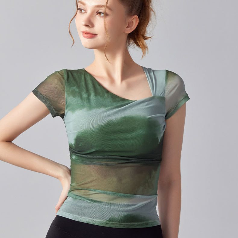 Tシャツ半袖ショート丈速乾フィットネスランニングヨガウェアトップス 2437