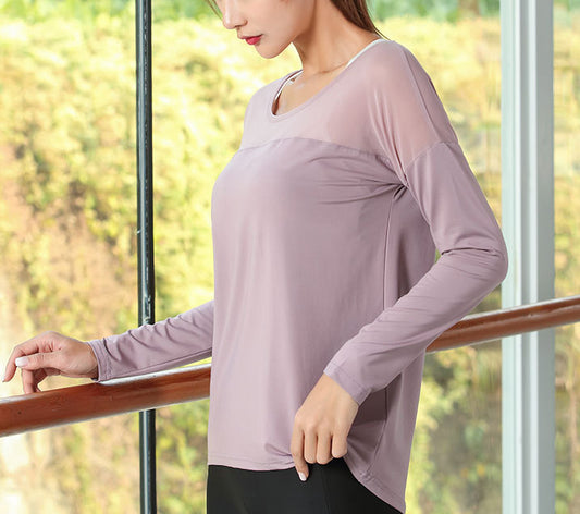 スポーツウェア長袖メッシュ切替速乾ランニングフィットネストップス 2454