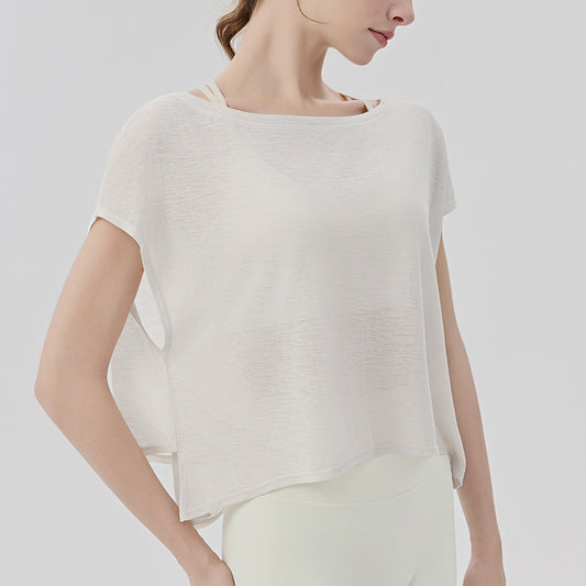 ゆったりVネック裾ドロスト半袖ヨガウェアフィットネスTシャツ 2450