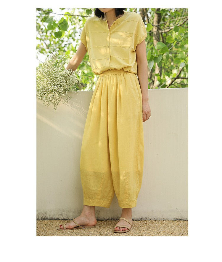 ラフ綿混ゆったりドローストリングバルーンパンツワイドパンツ 3155
