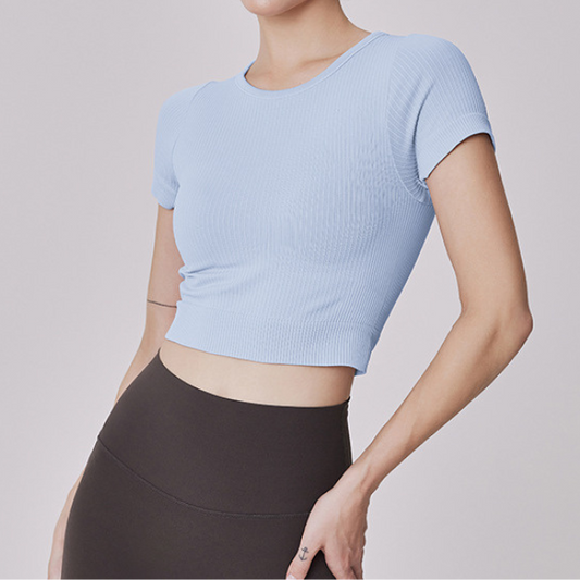 リボン付きワッフル生地ゆったりヨガトップ 2372