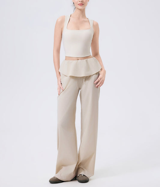 ドローストリングとフリルデザインのヨガパンツ 3093
