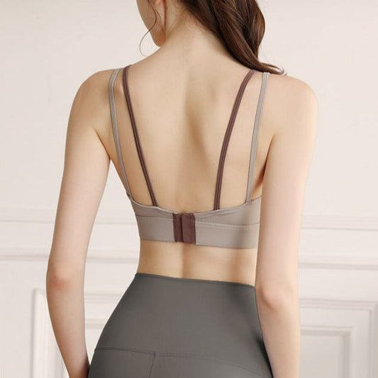 美背 太めストラップ カップ付き ピラティス ブラトップ 2392