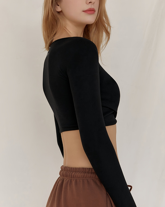 Vネック長袖ヨガウェアセットアップ 4073
