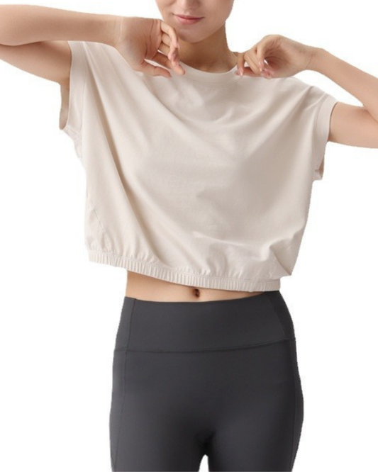 フレンチスリーブウエストギャザーヨガT 2237