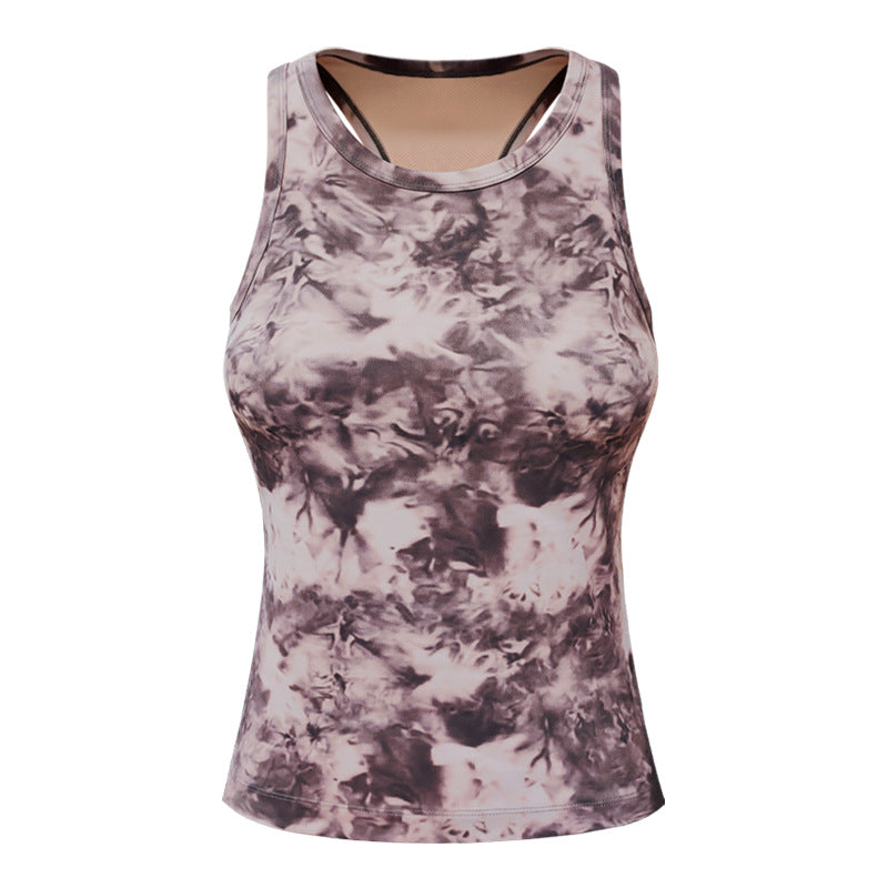 タイダイ柄ノースリーブフィットヨガウェアトップス2328