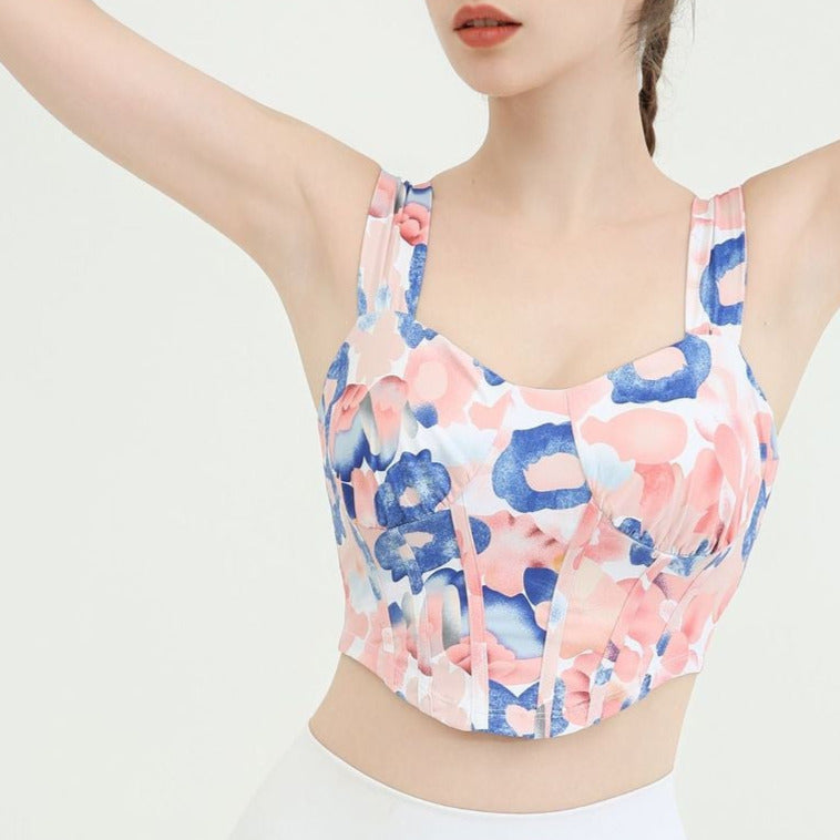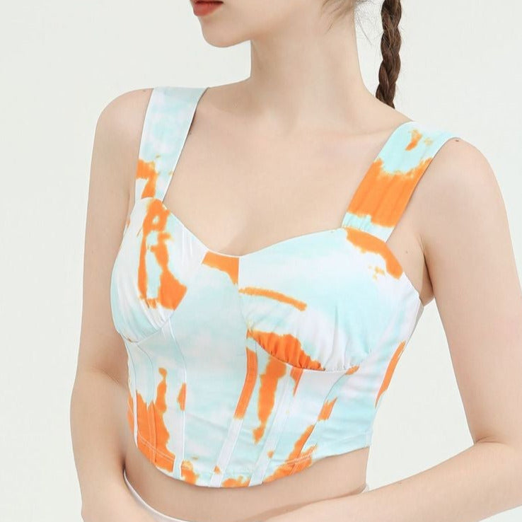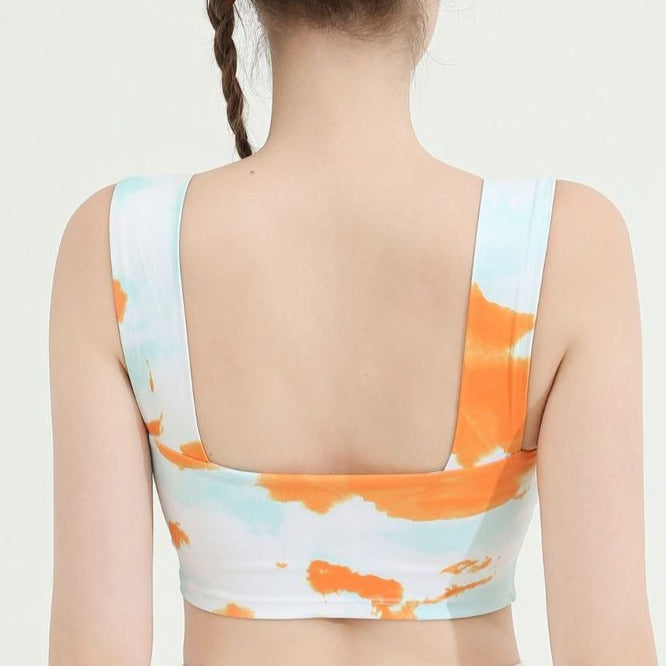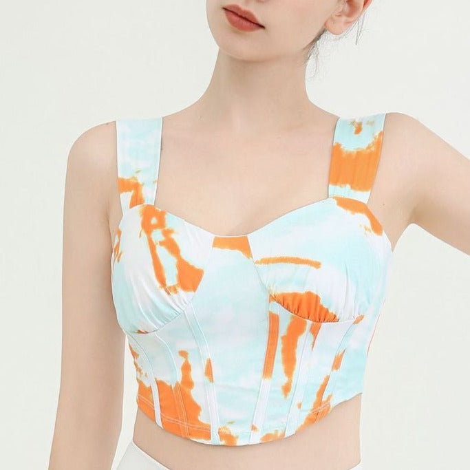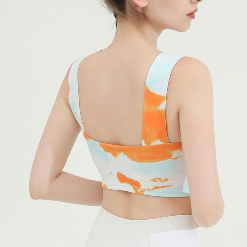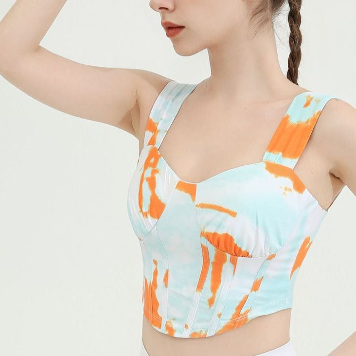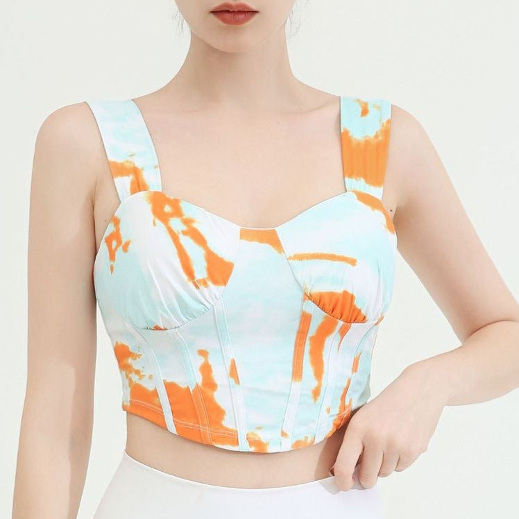 タイダイ柄ドレープネックヨガトップス2327
