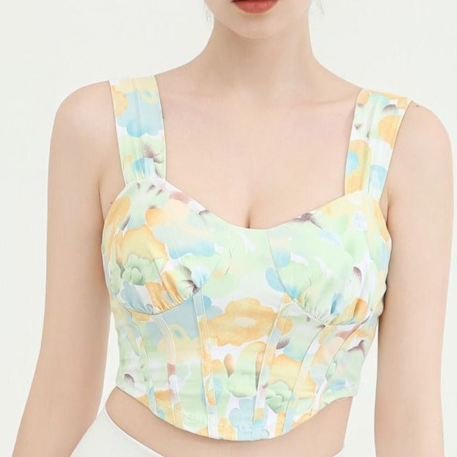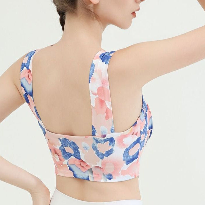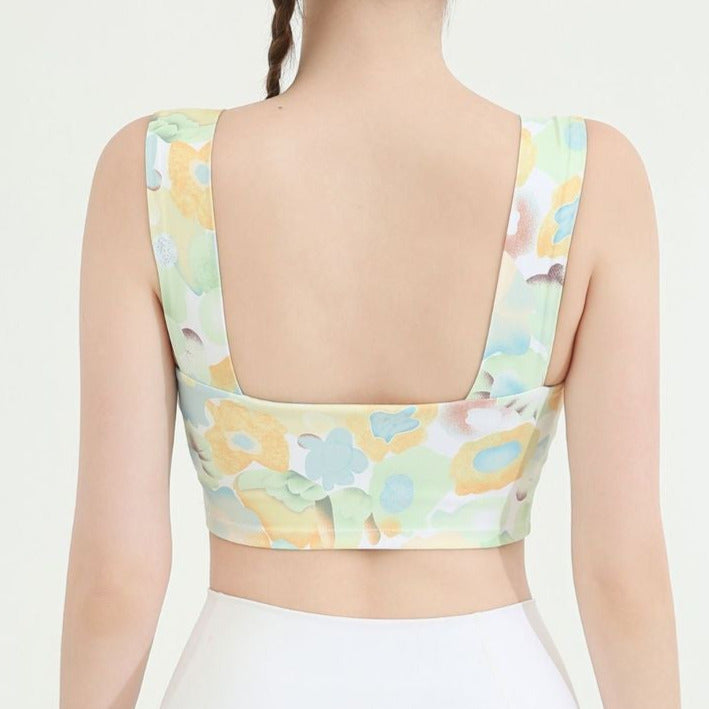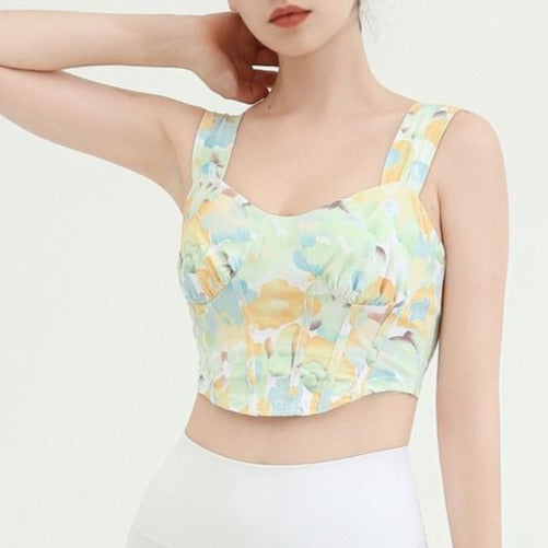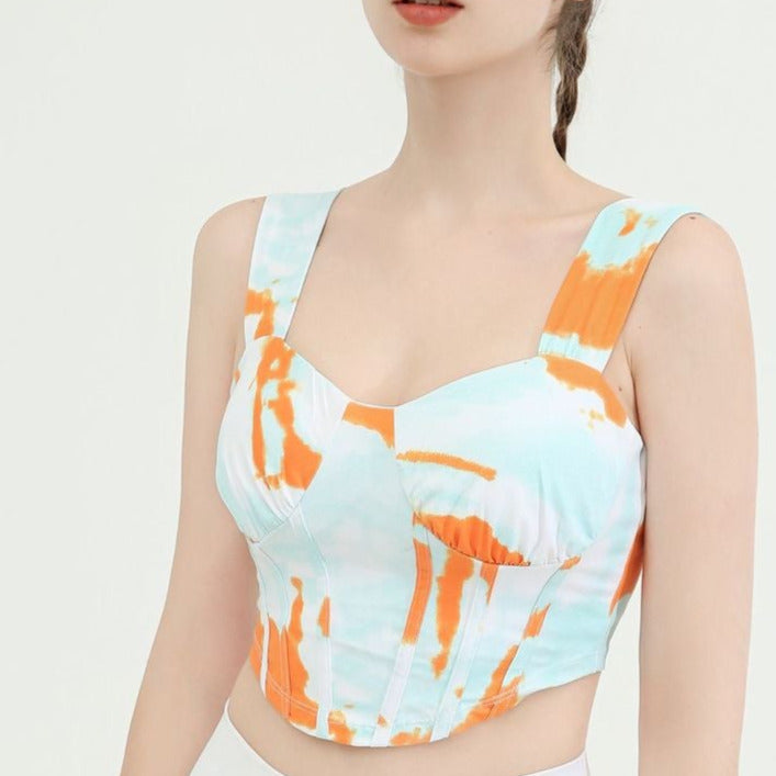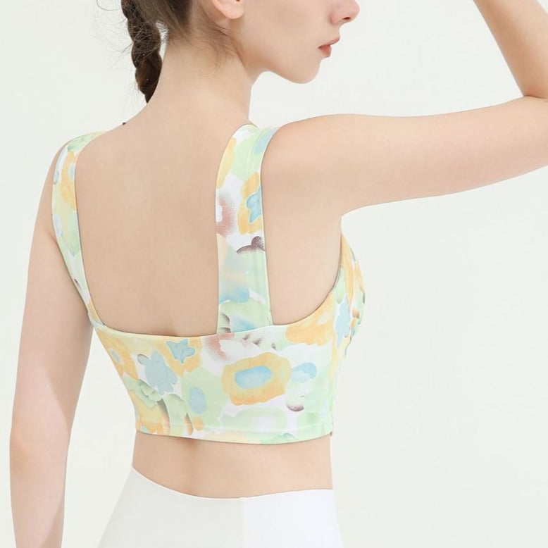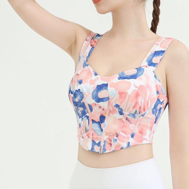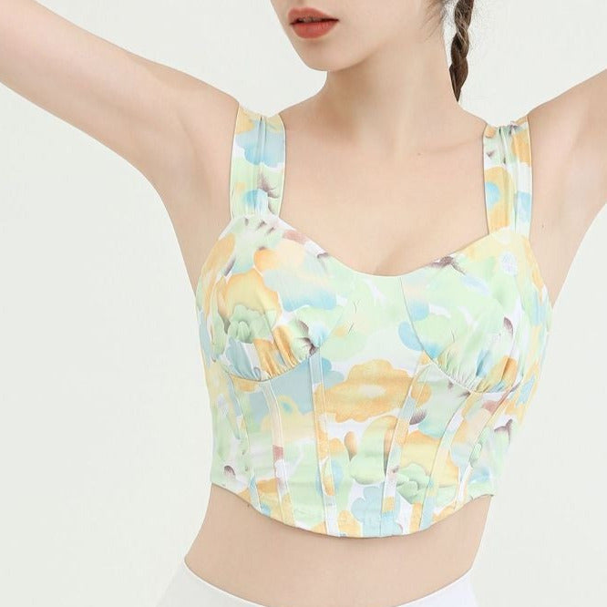 タイダイ柄ドレープネックヨガトップス2327