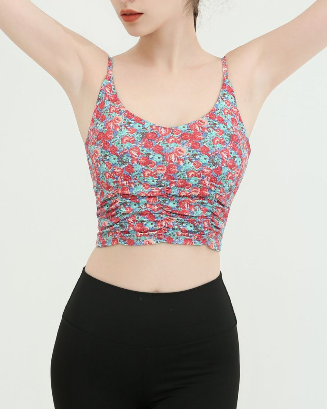 タイダイ柄ドレープネックヨガトップス2327