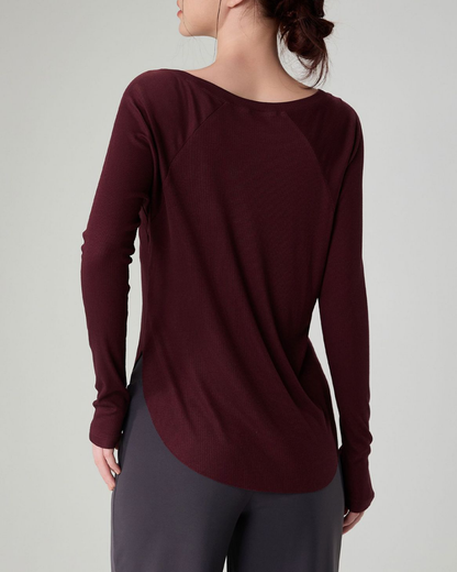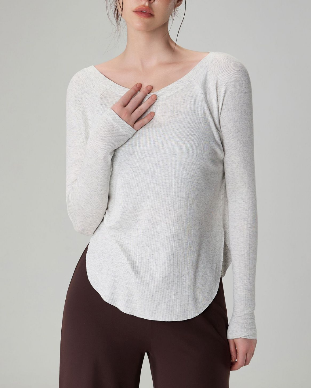 Vネックのワッフル生地ゆったりヨガトップ 2284