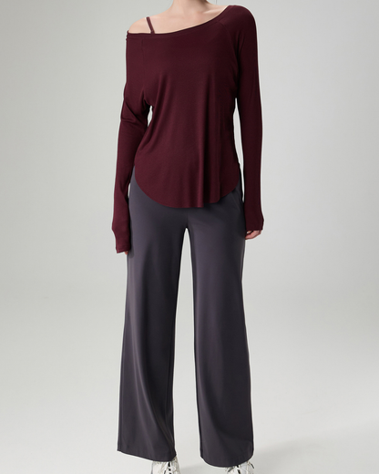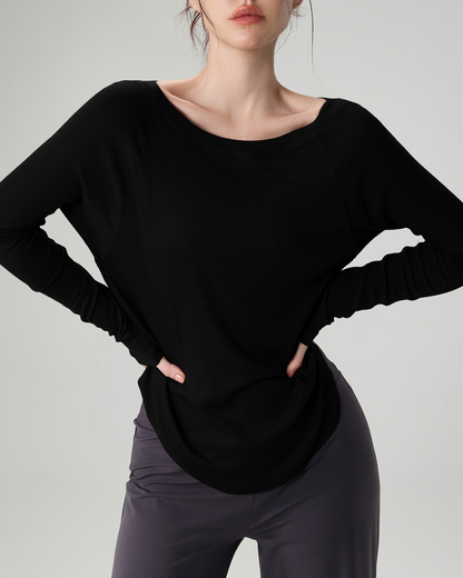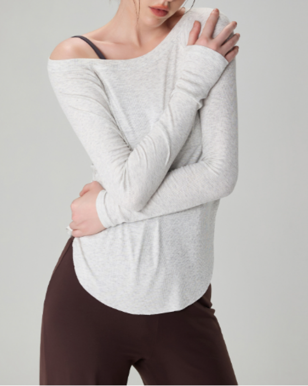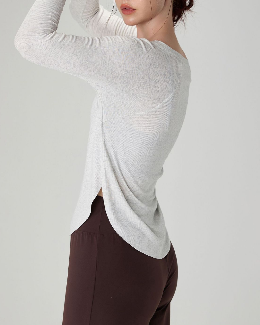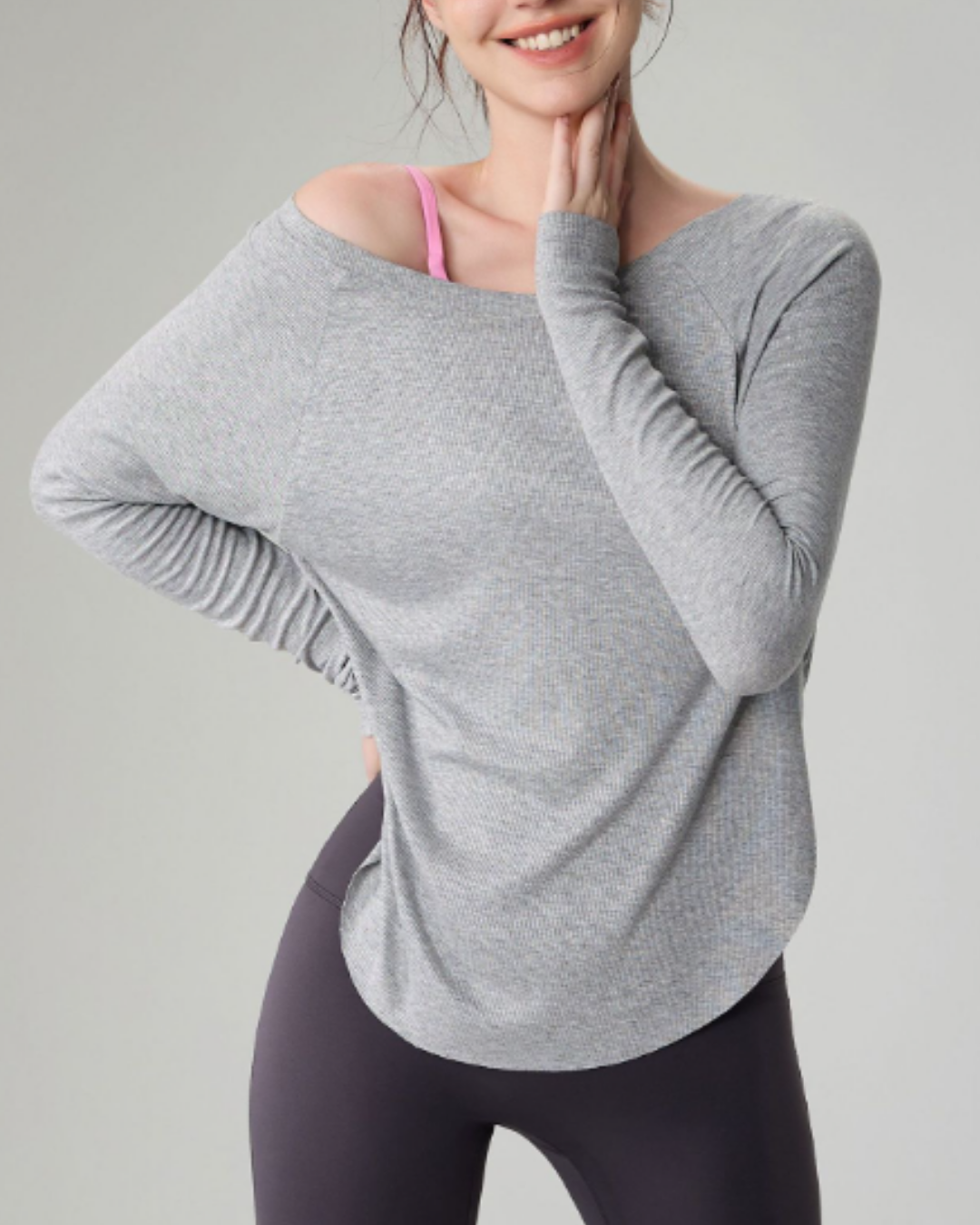 -30% OFFコットン クルーネック ゆったりヨガトップ 2391