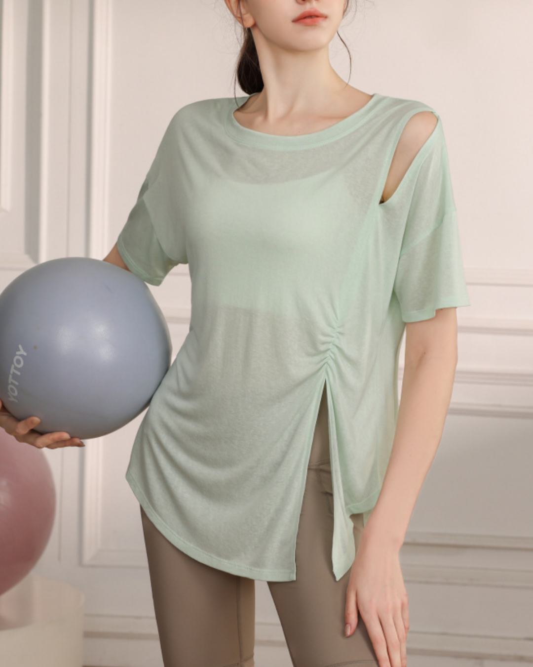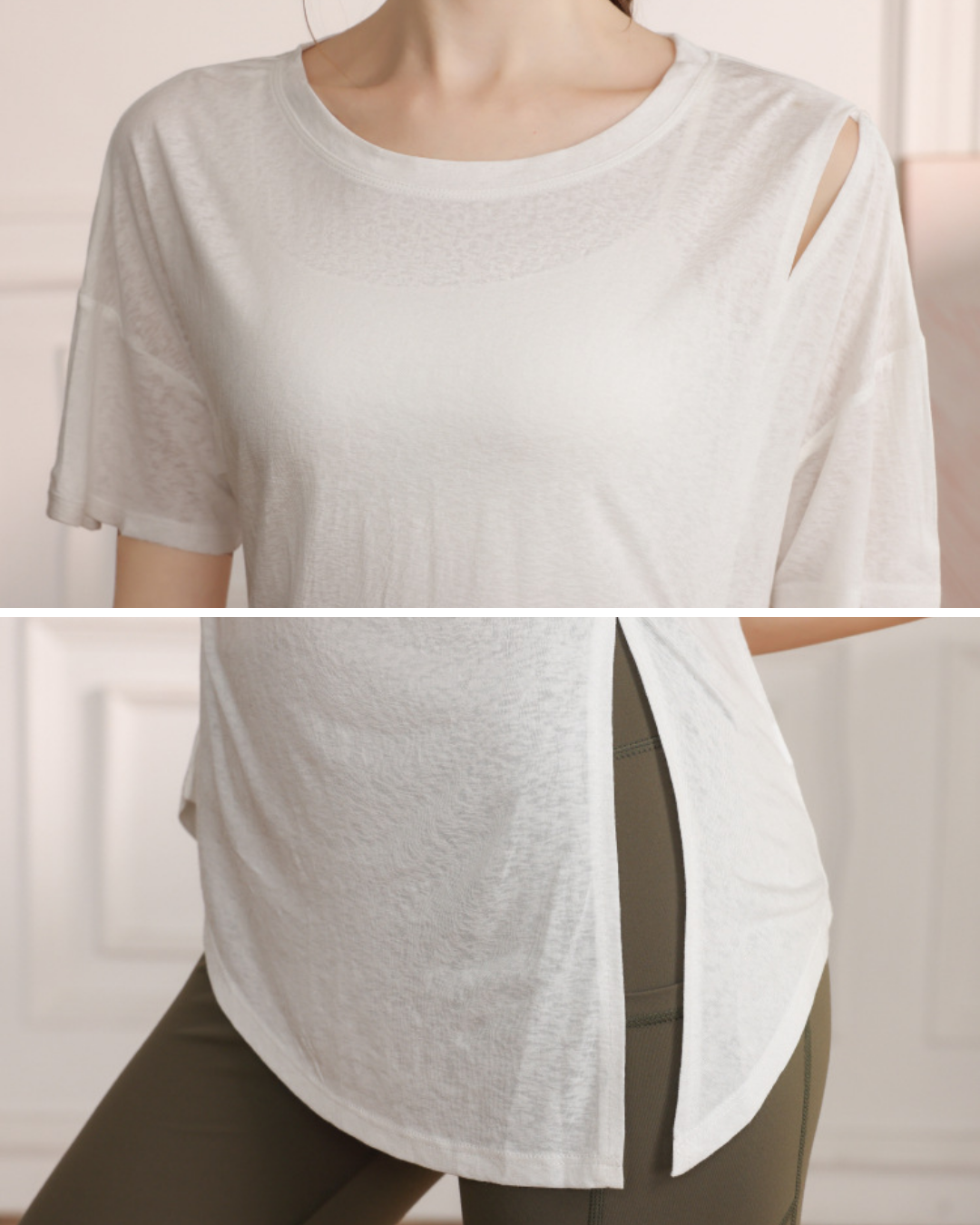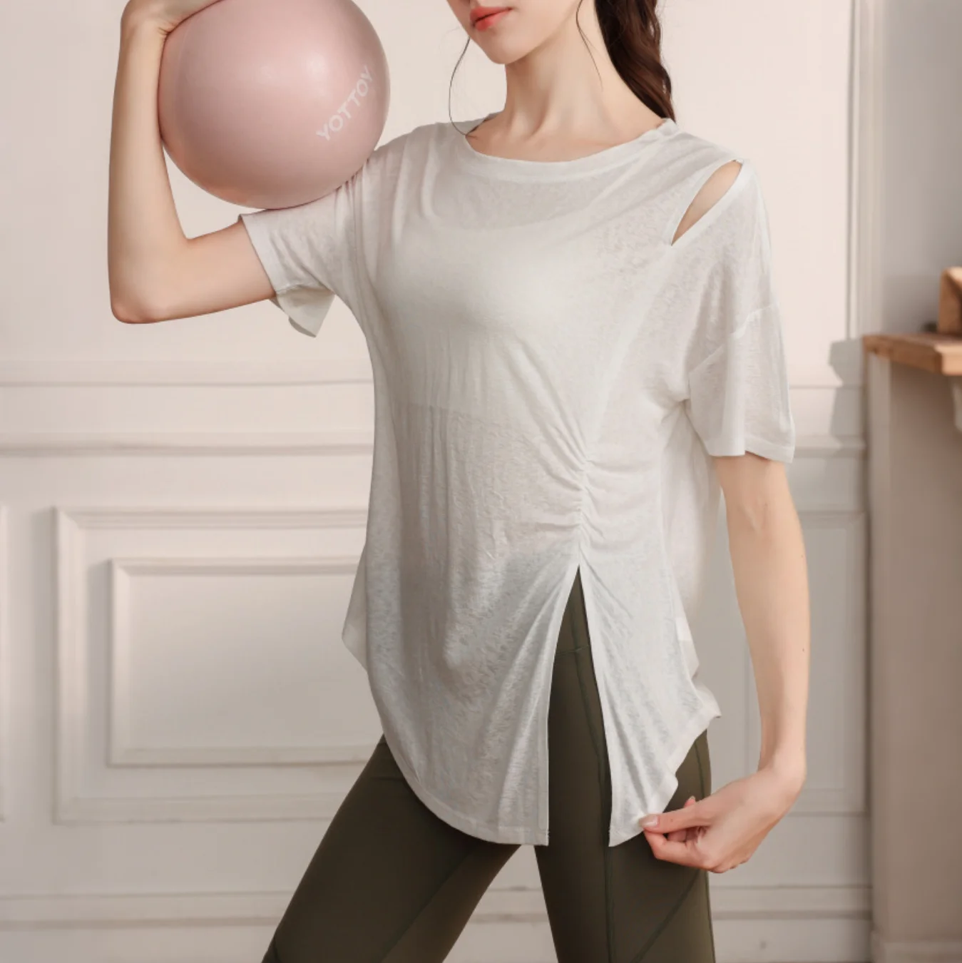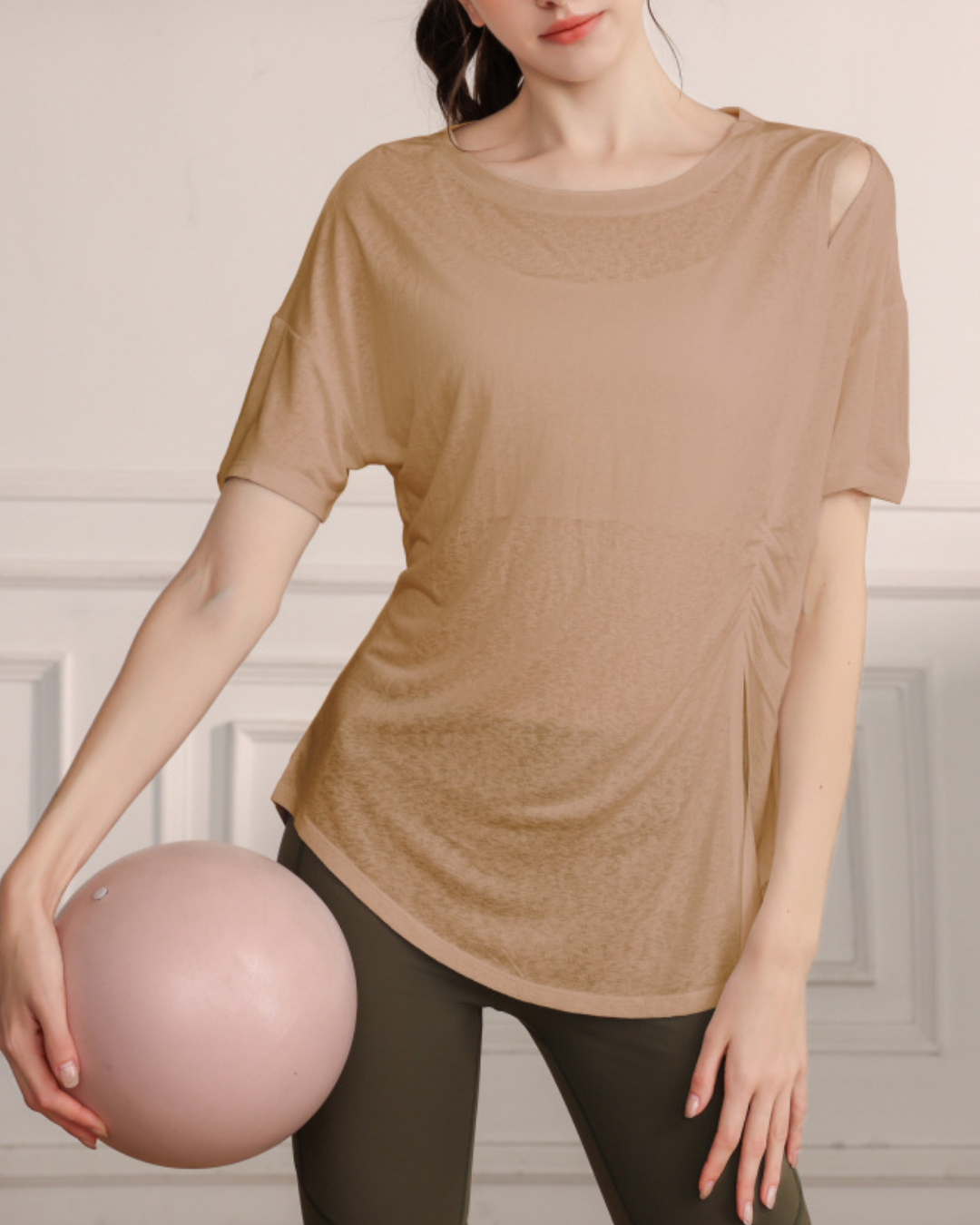くすみハーフシアーショルダーカットアウトヨガT 2260