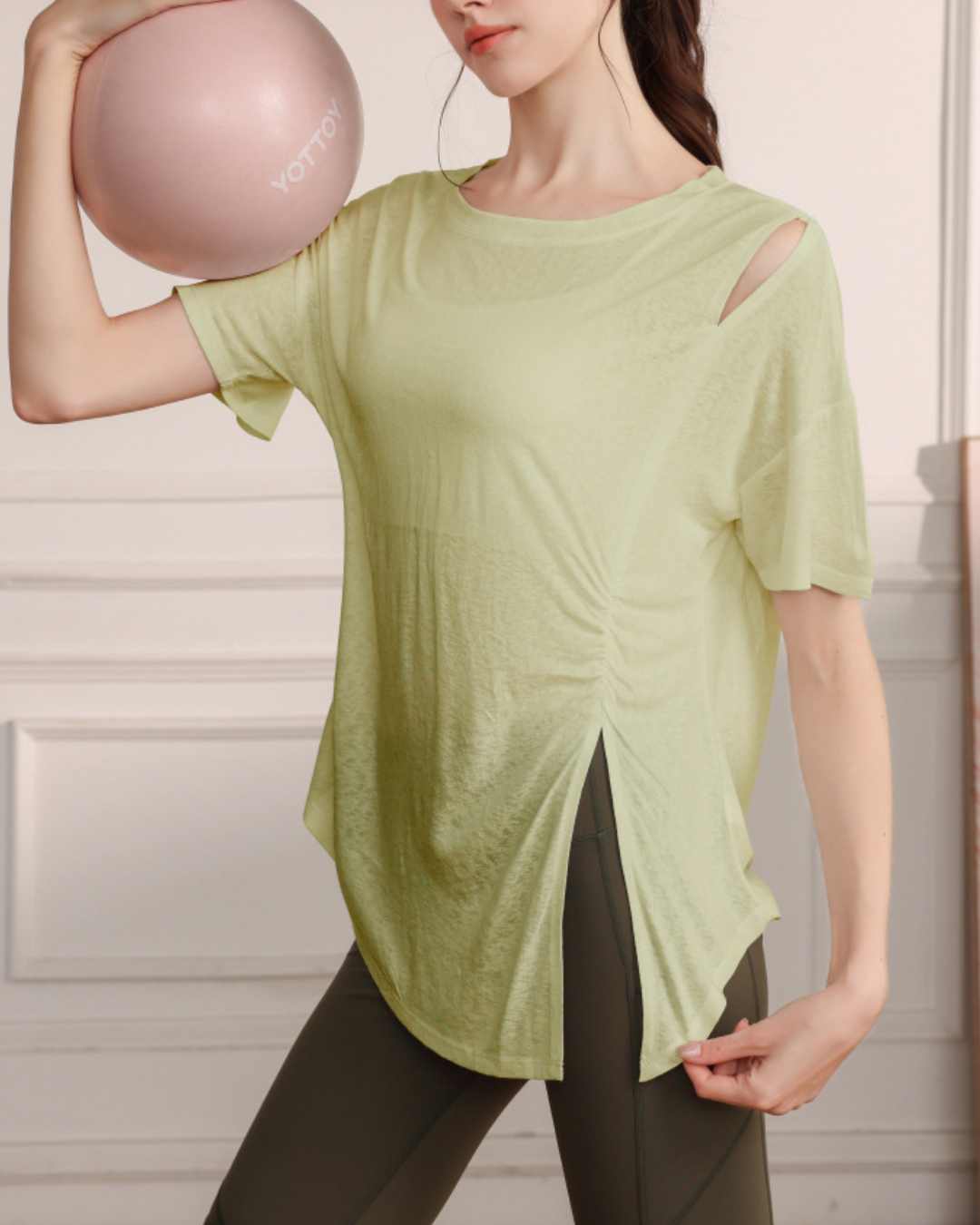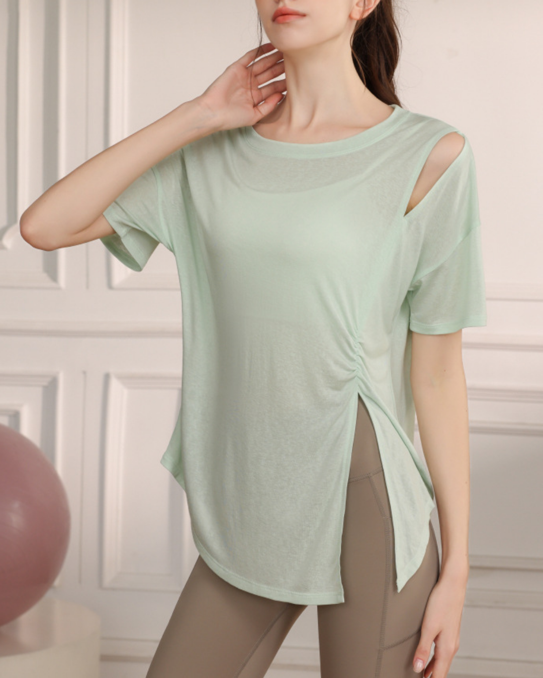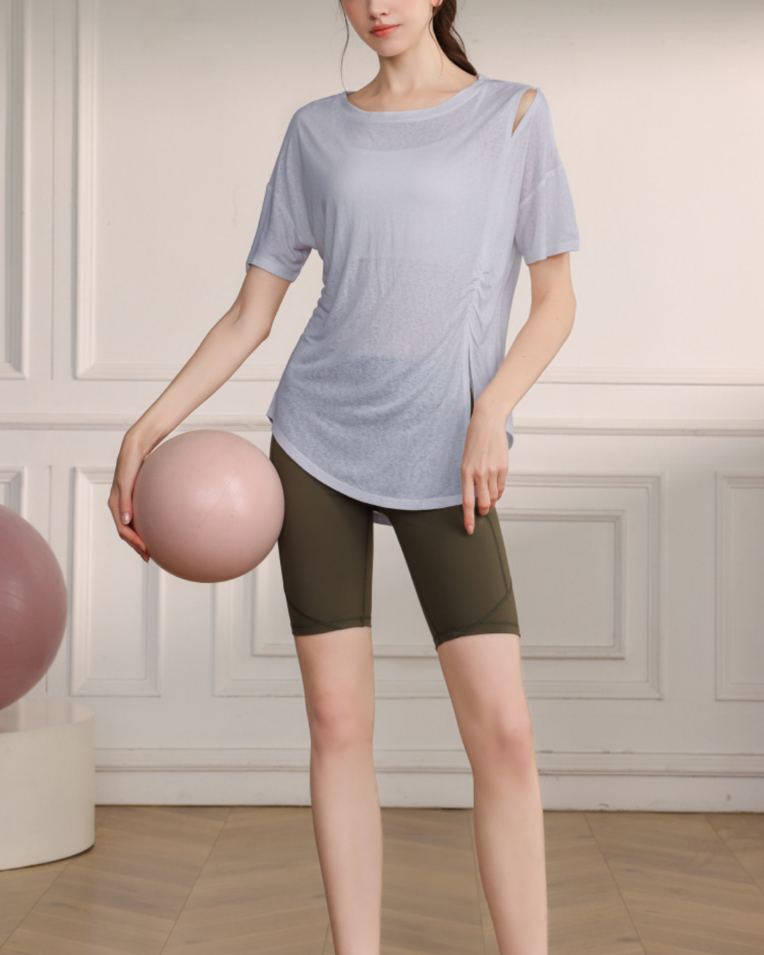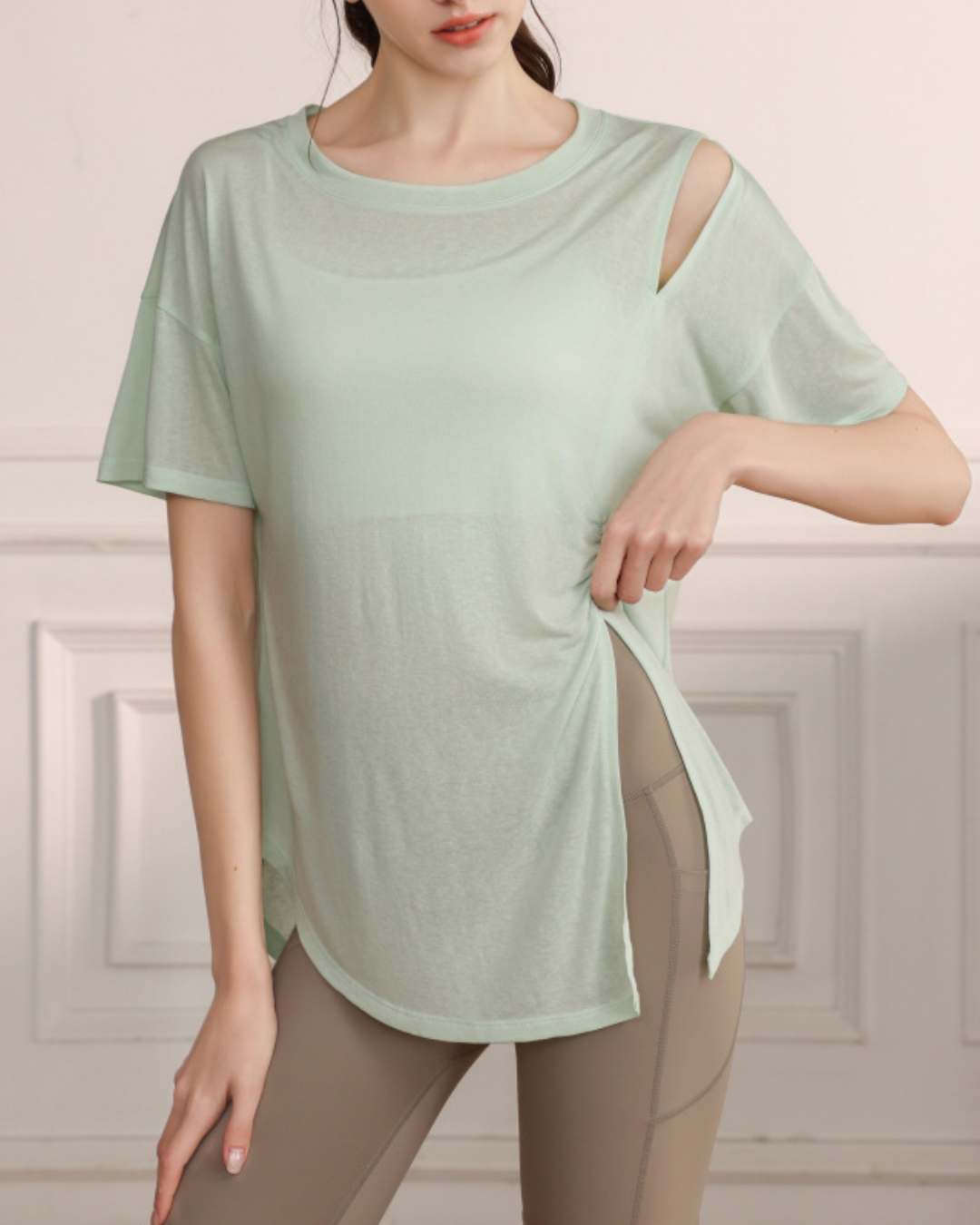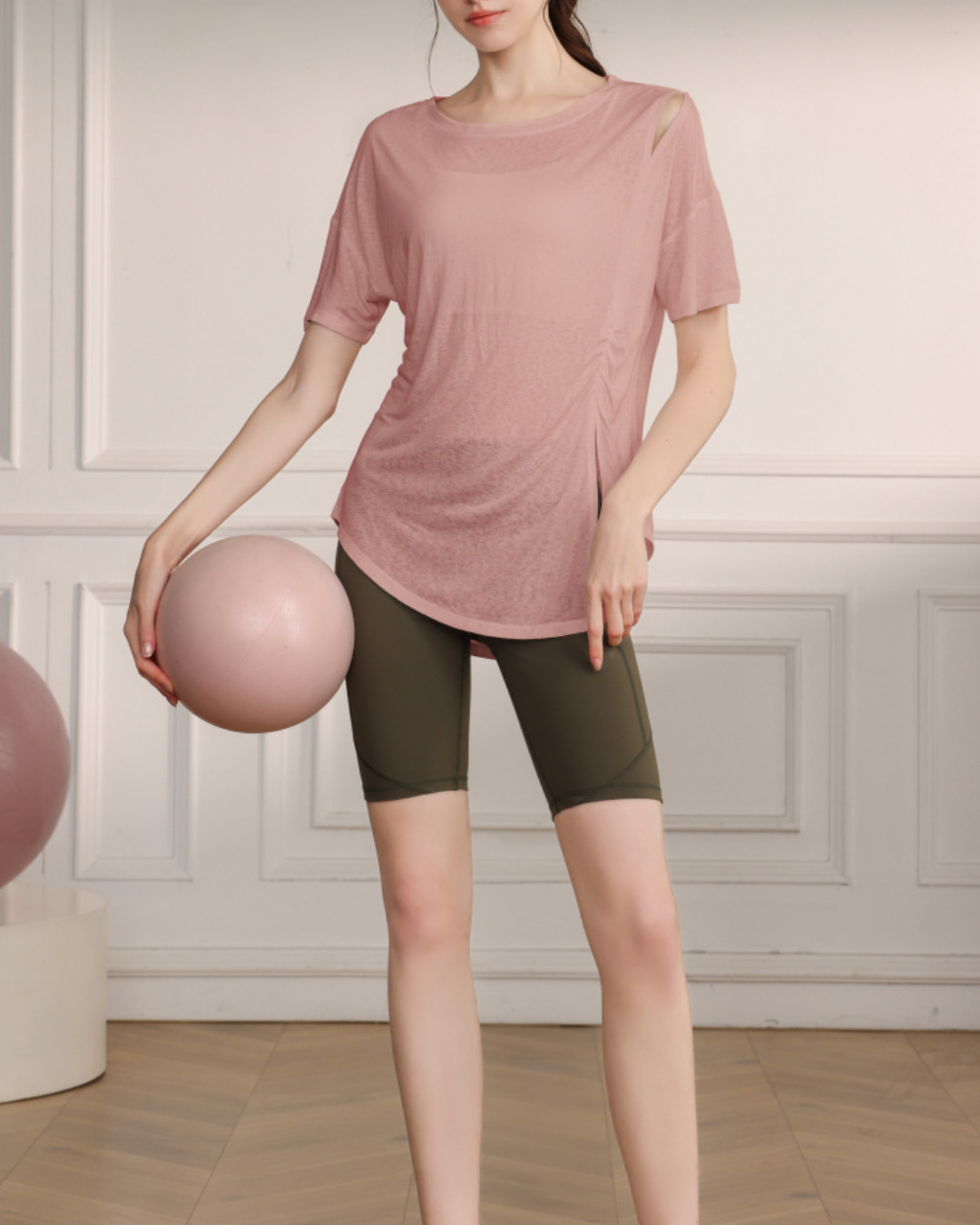 くすみハーフシアーショルダーカットアウトヨガT 2260