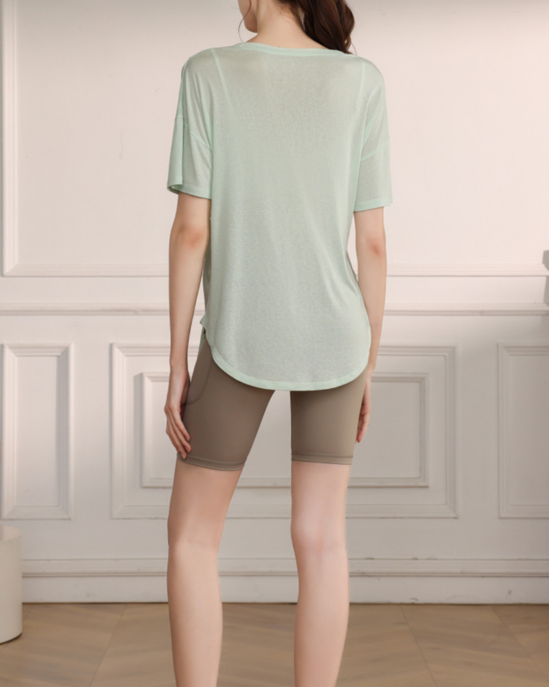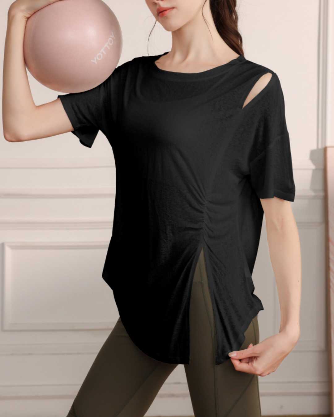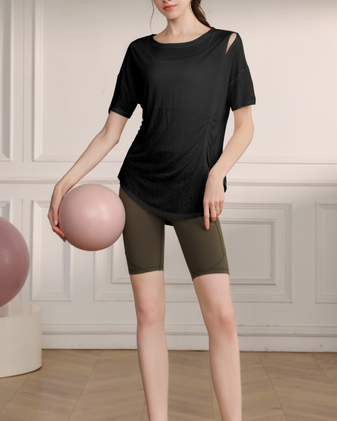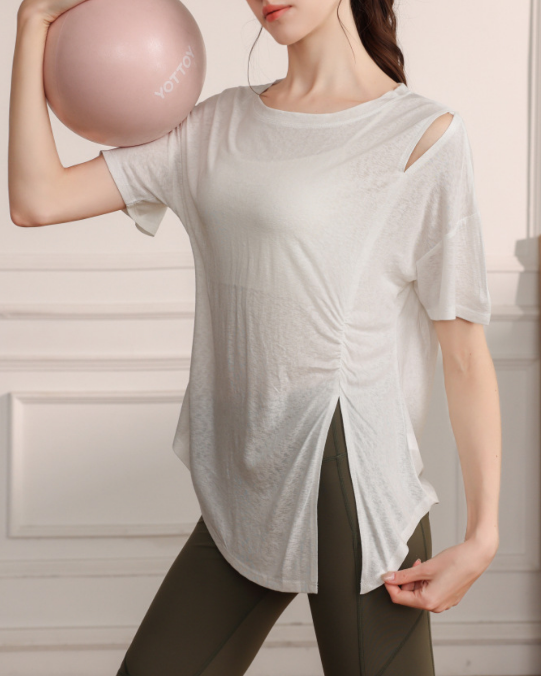 くすみハーフシアーショルダーカットアウトヨガT 2260