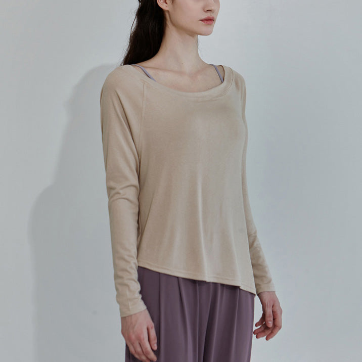 -30% OFFコットン クルーネック ゆったりヨガトップ 2391