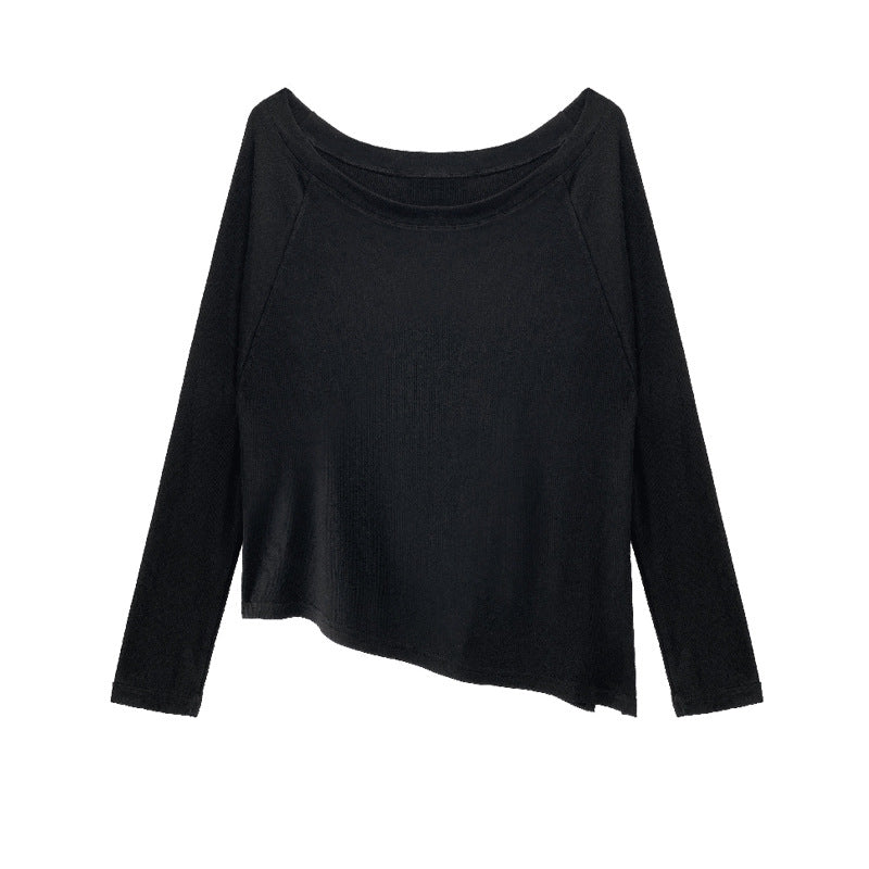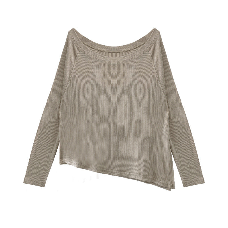 マルボートネックリブニットロングトップ 2255