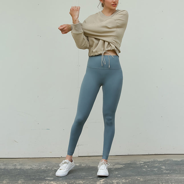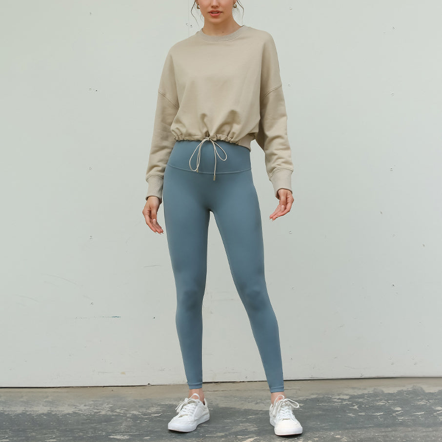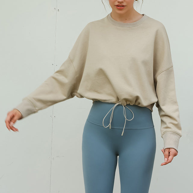 ウエストギャザーロングスリーブ体型カバーヨガ トップス 2399