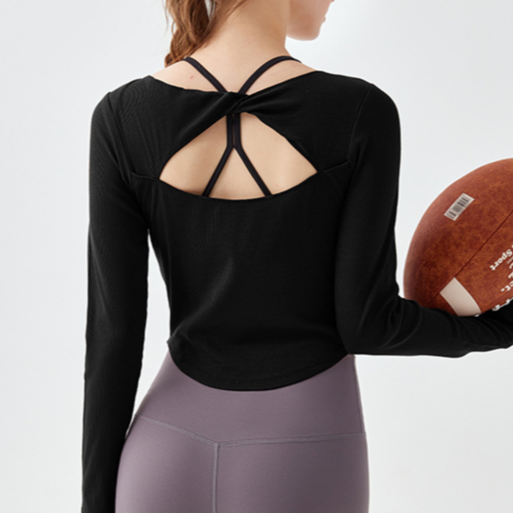 フェイクツー リボン メッシュ ヨガトップス 2416