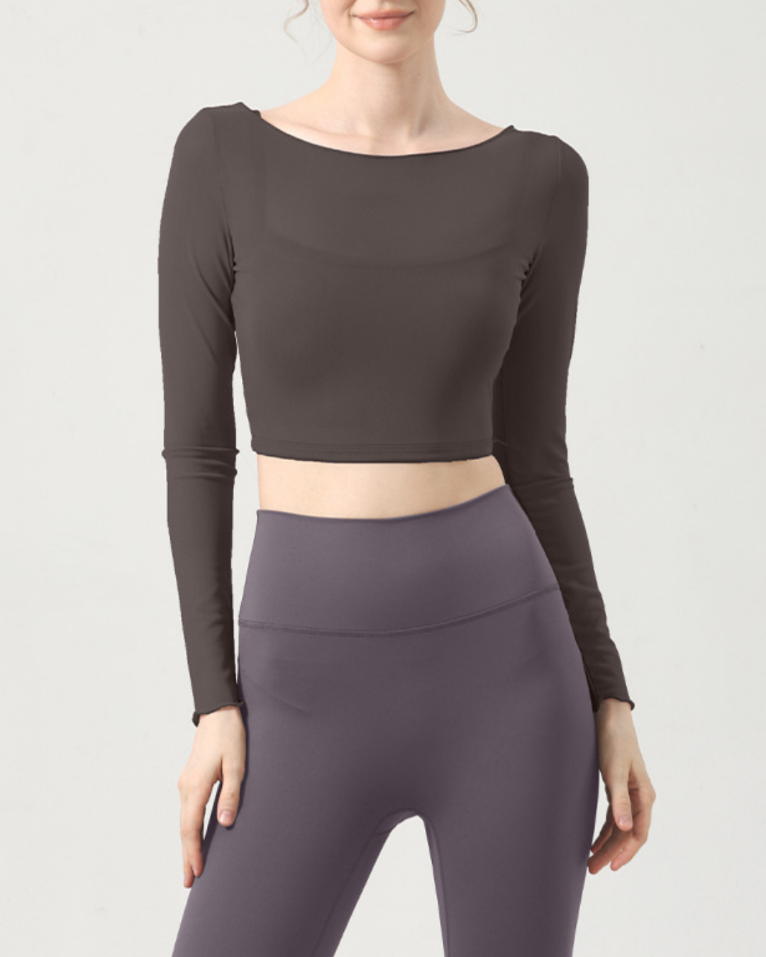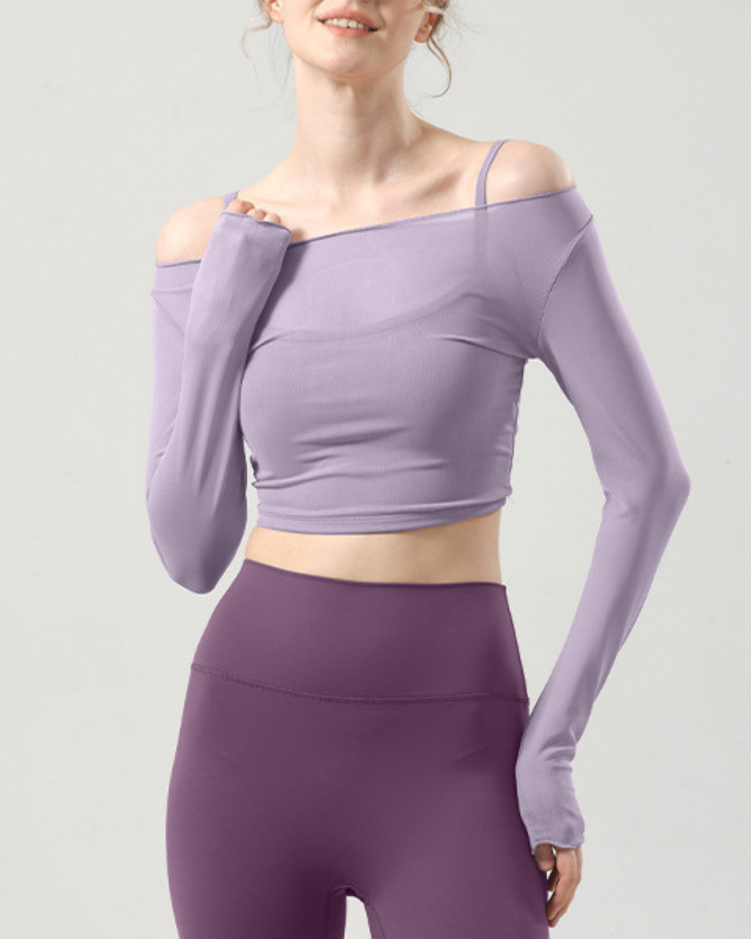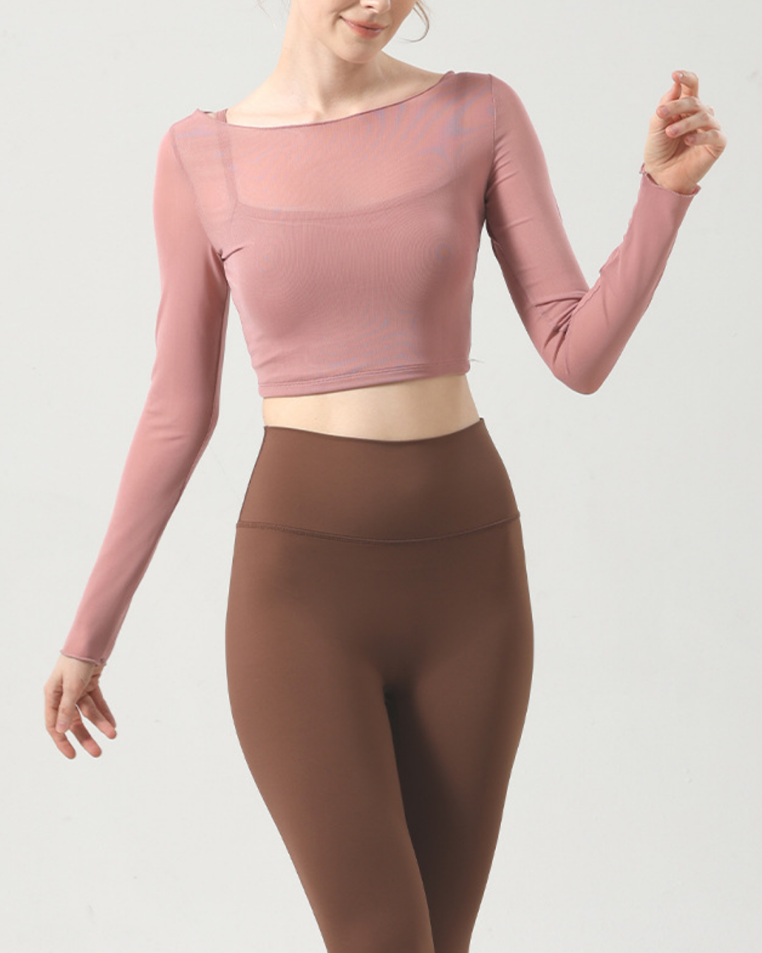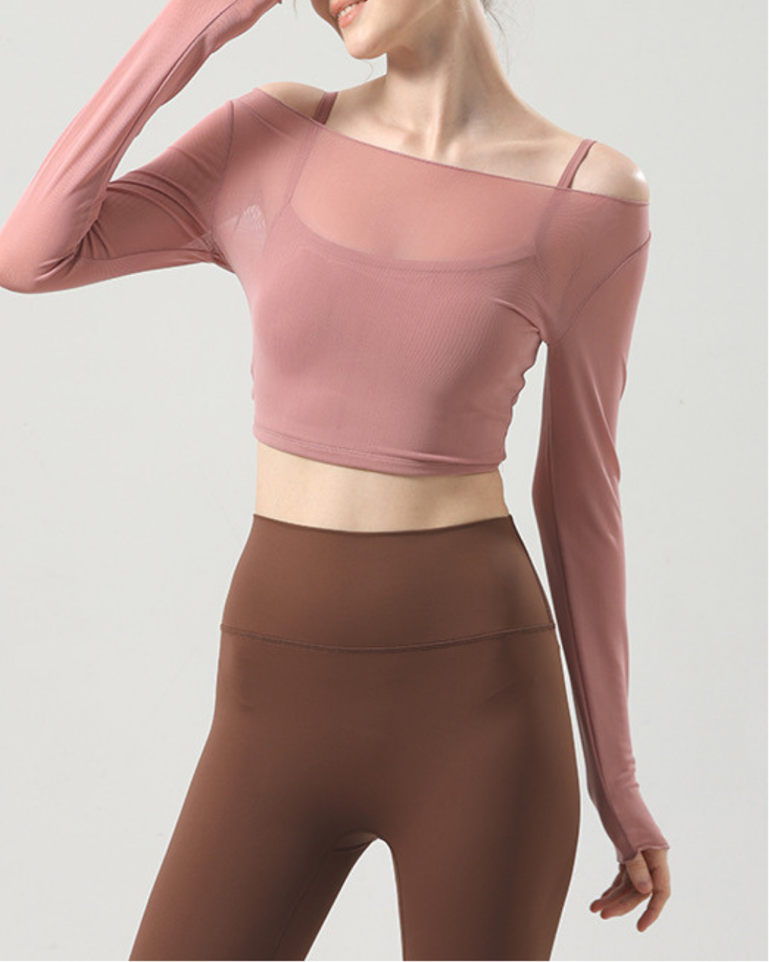 フェイクツー リボン メッシュ ヨガトップス 2416