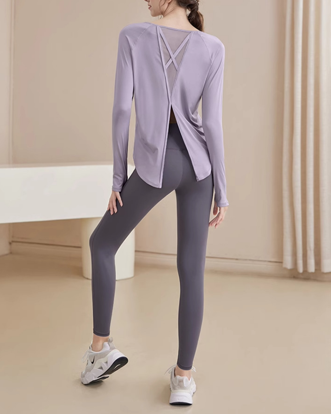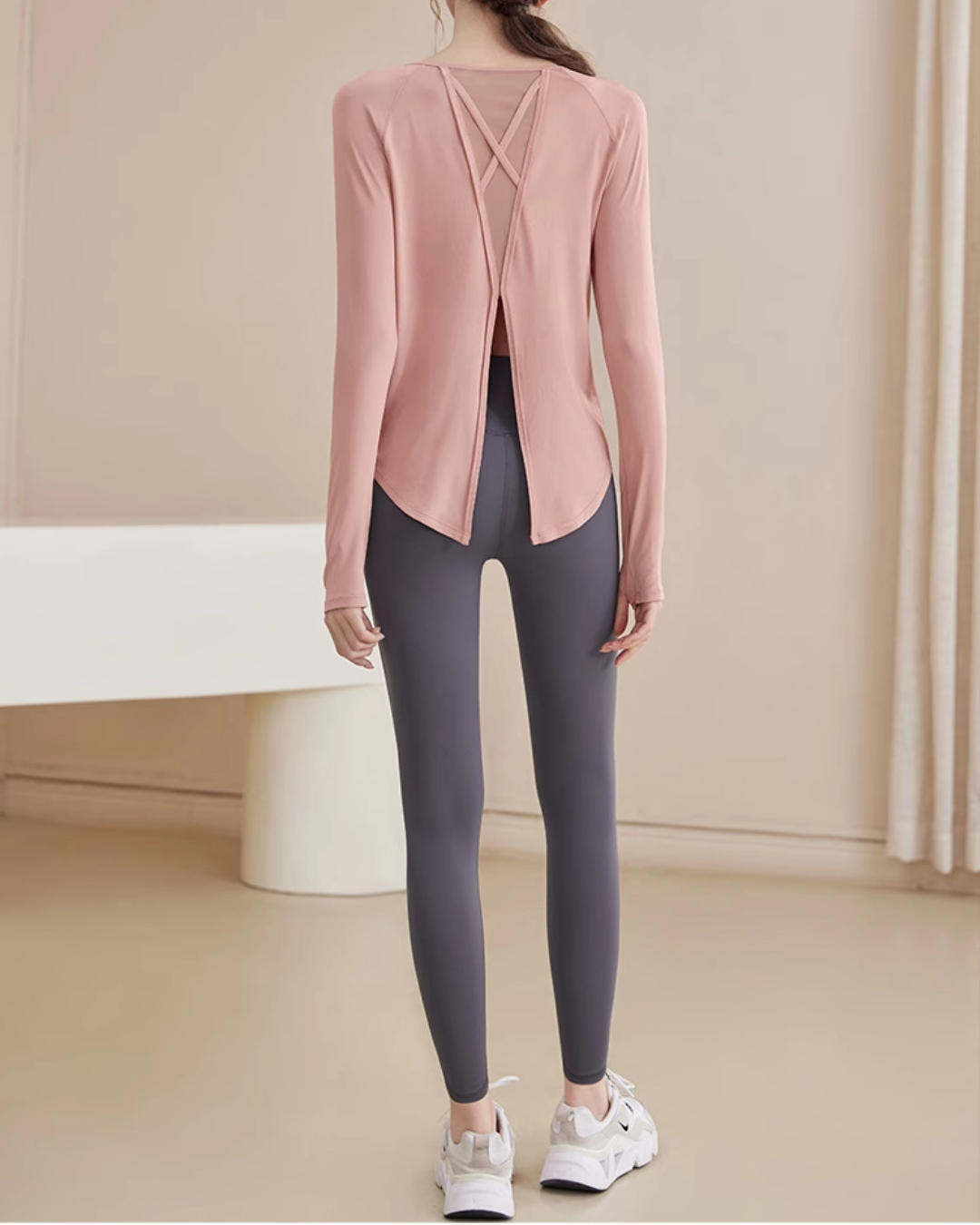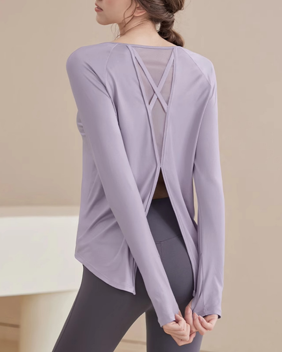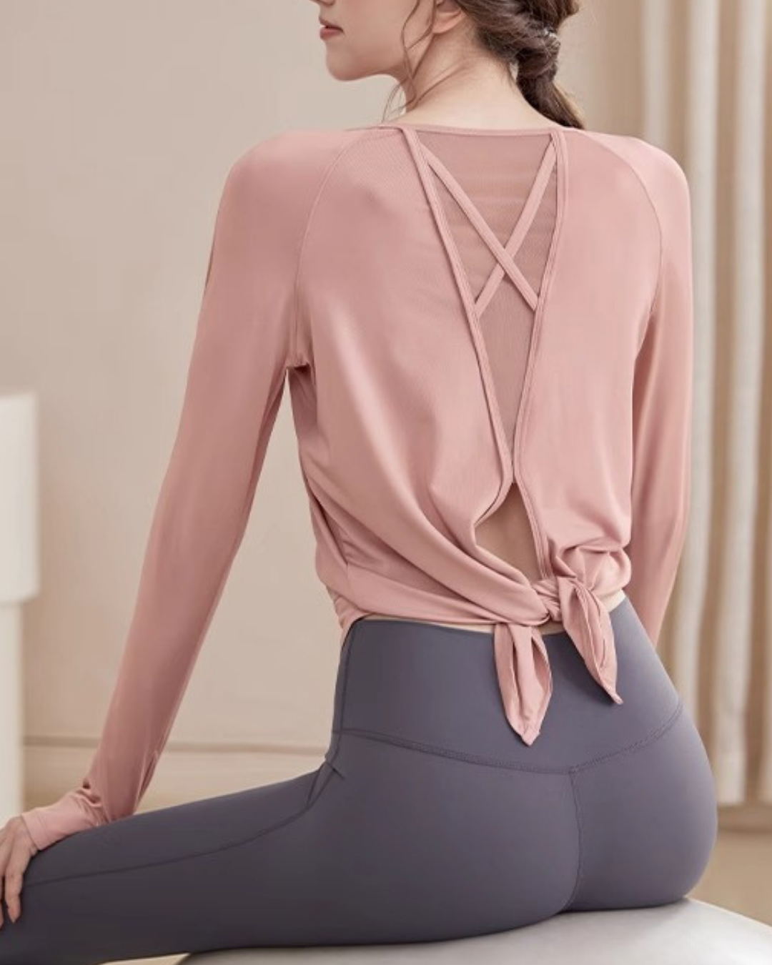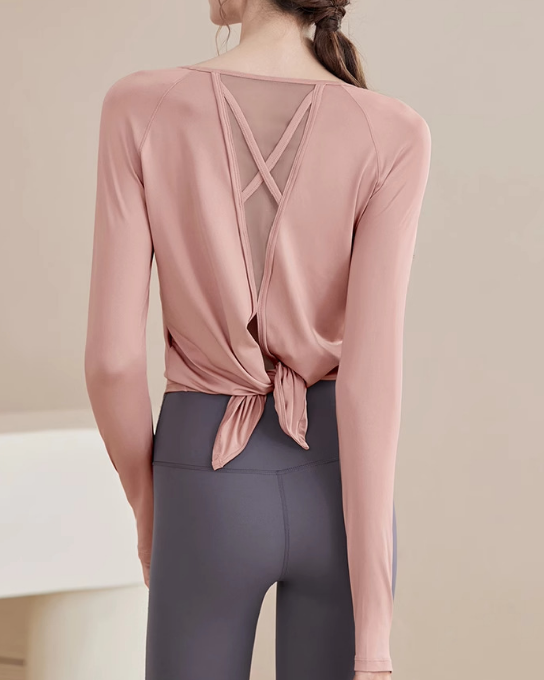 フェイクツー リボン メッシュ ヨガトップス 2416