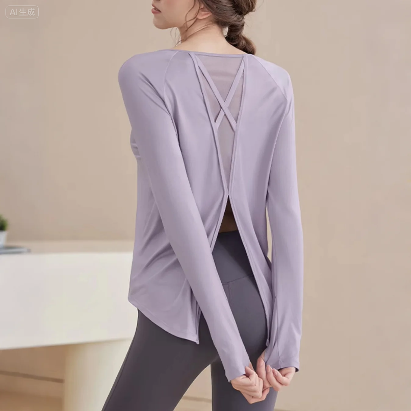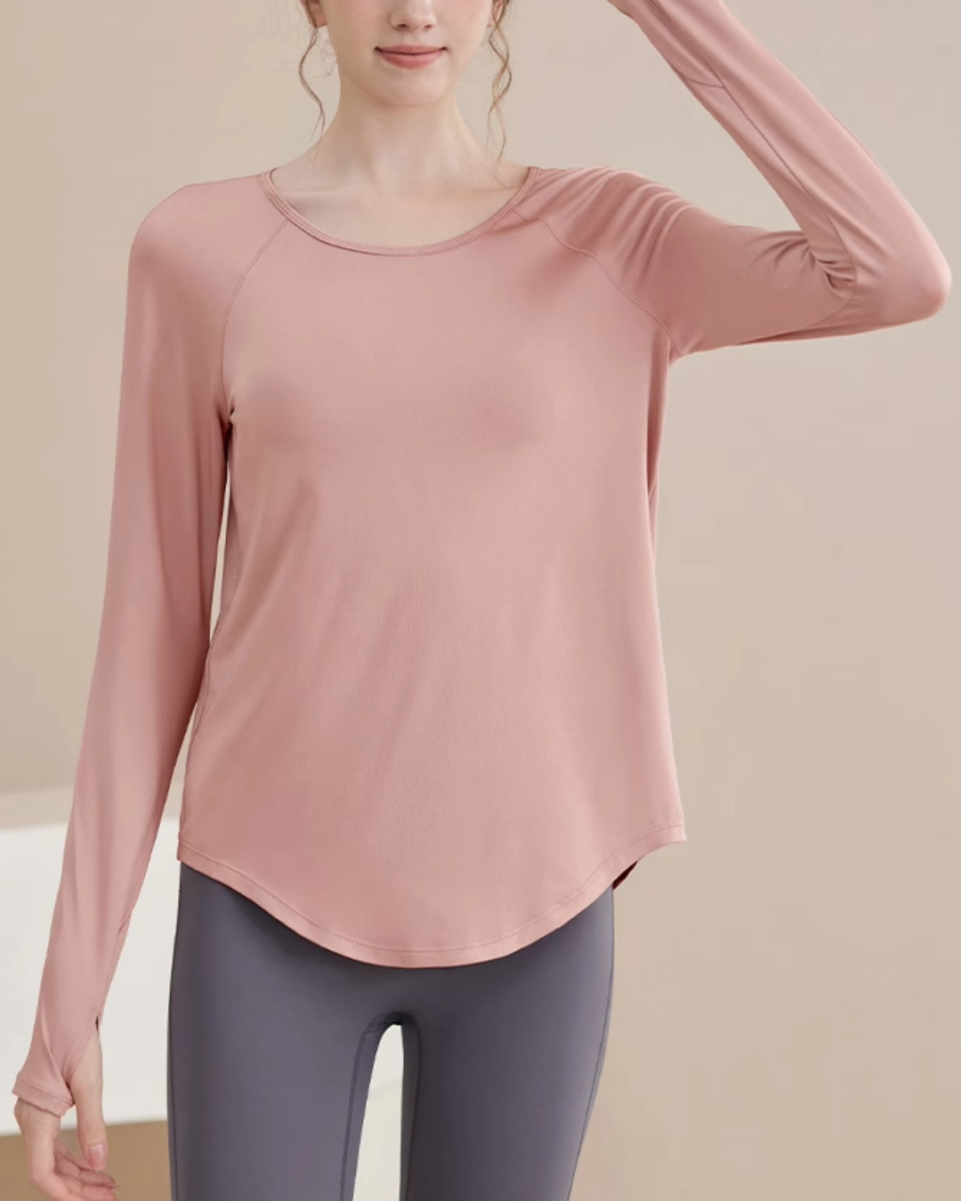 -30% OFFコットン クルーネック ゆったりヨガトップ 2391