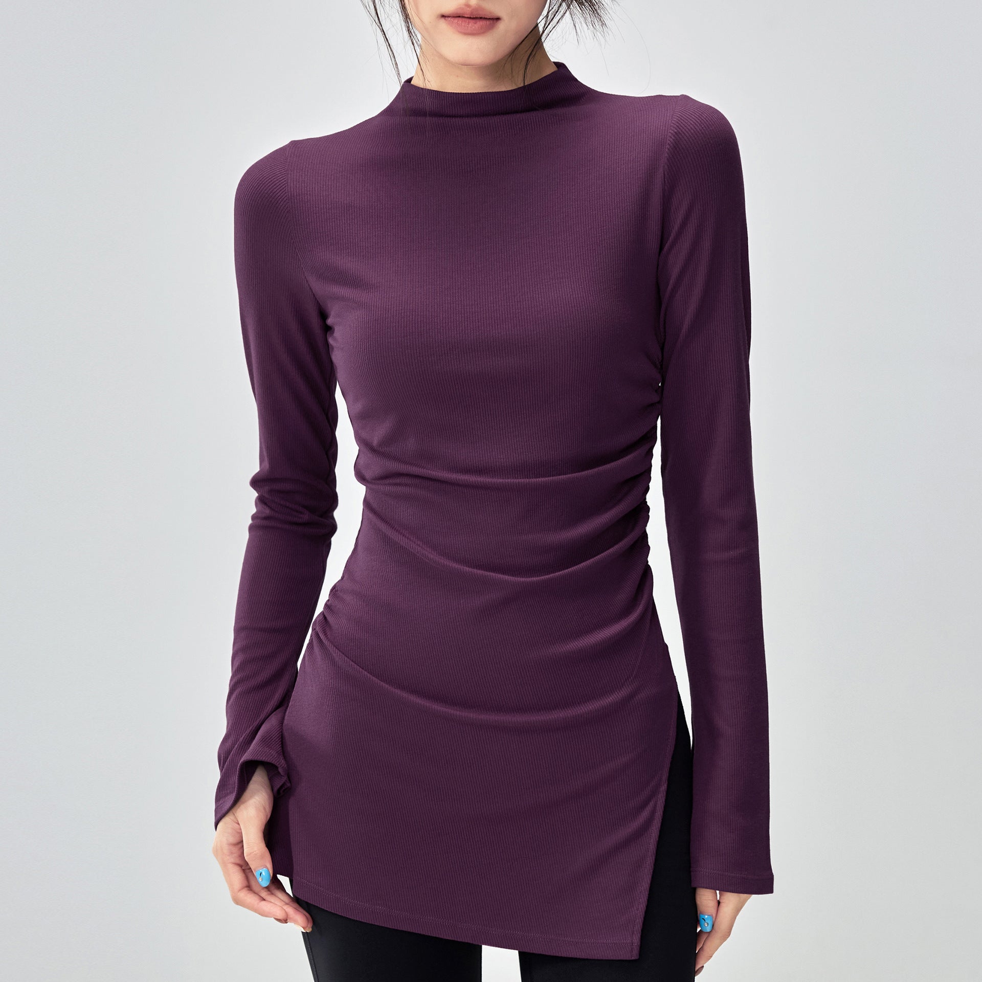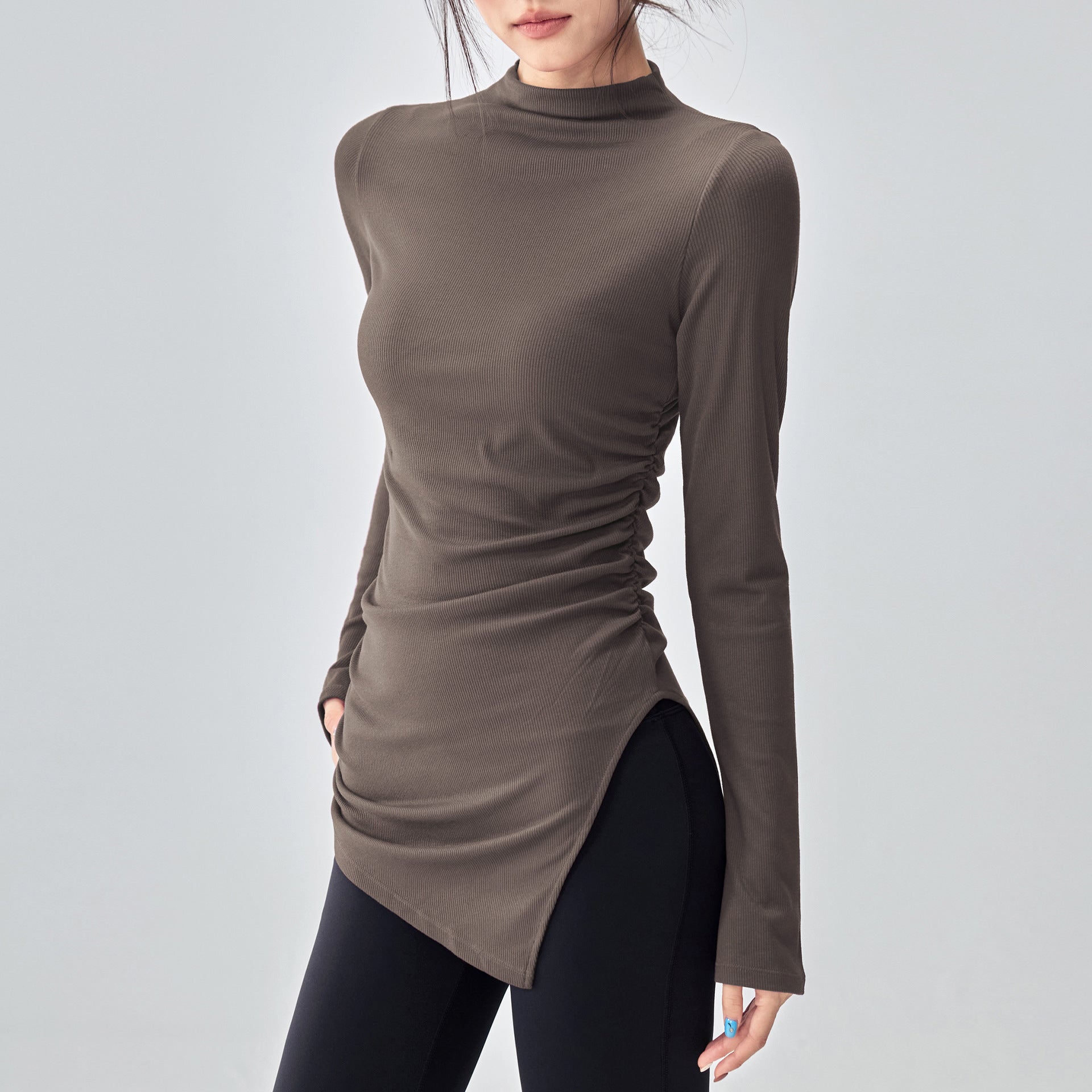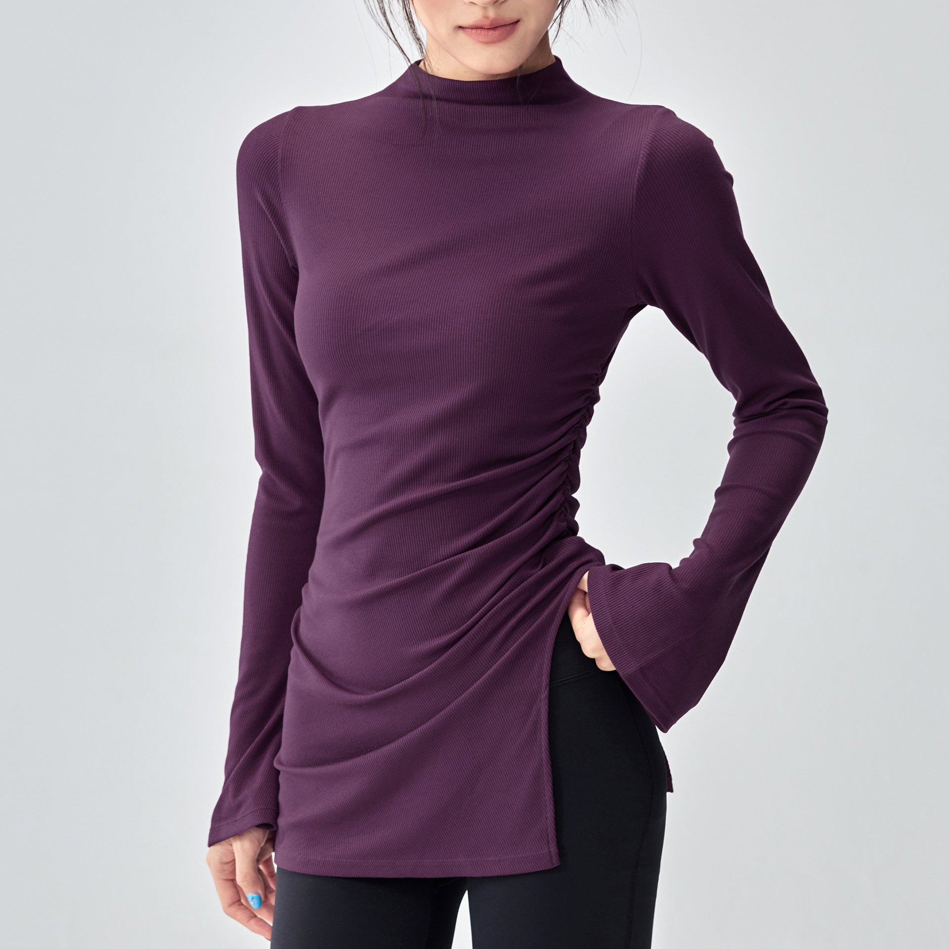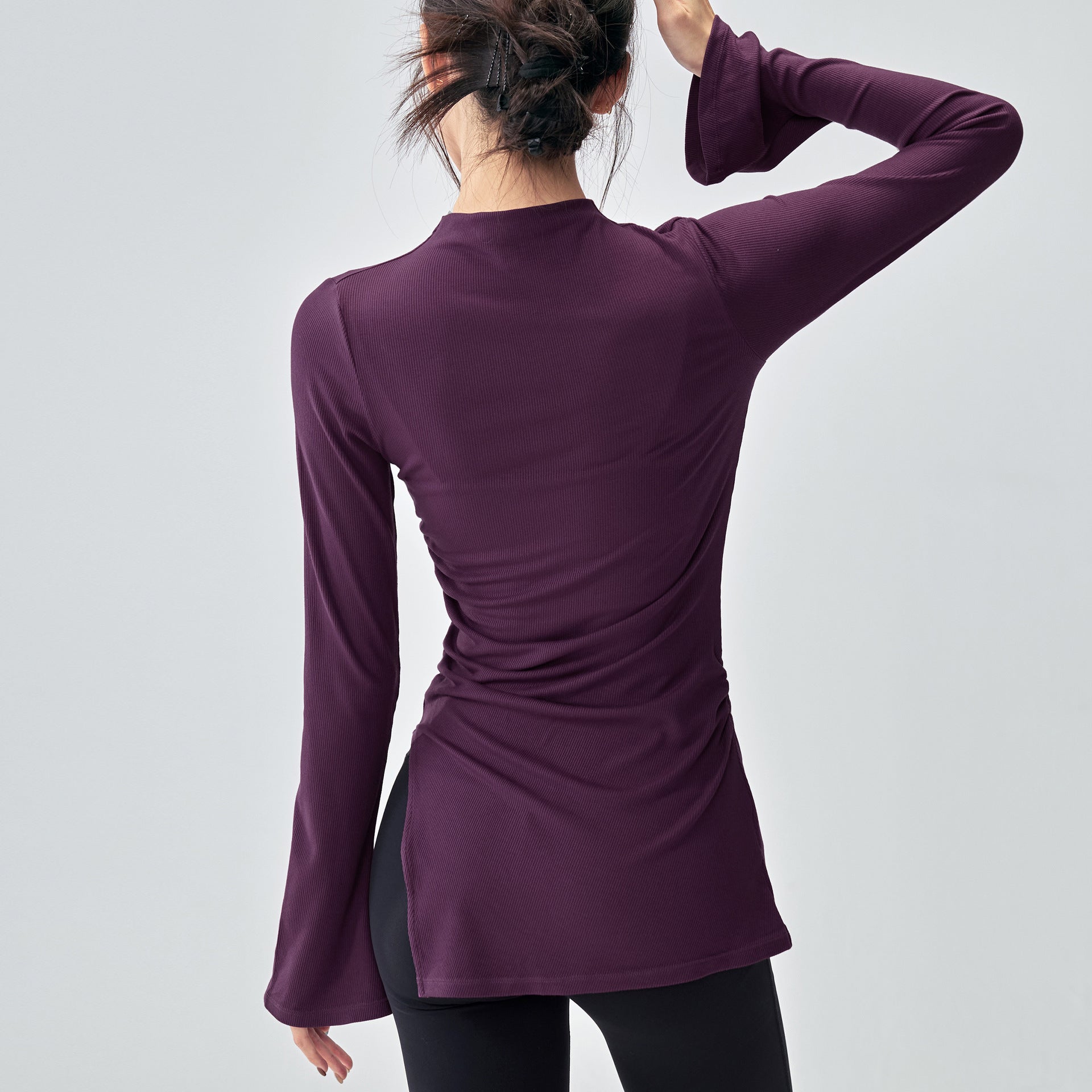 ボトルネック体型カバー ベルスリーブヨガ トップス 2396