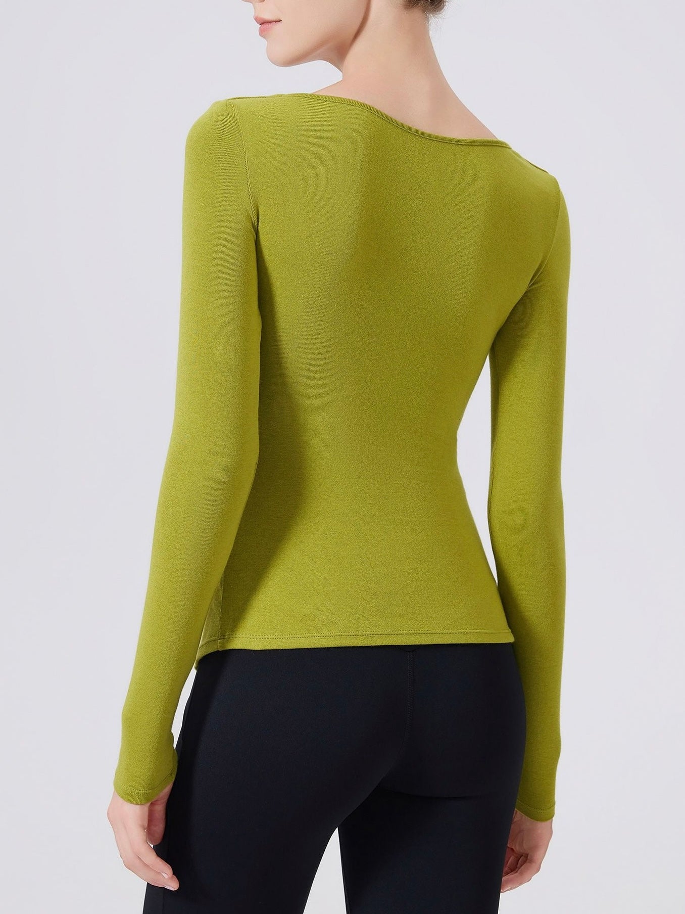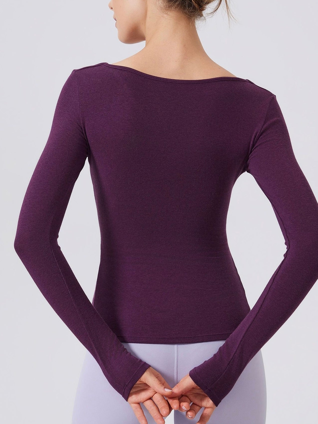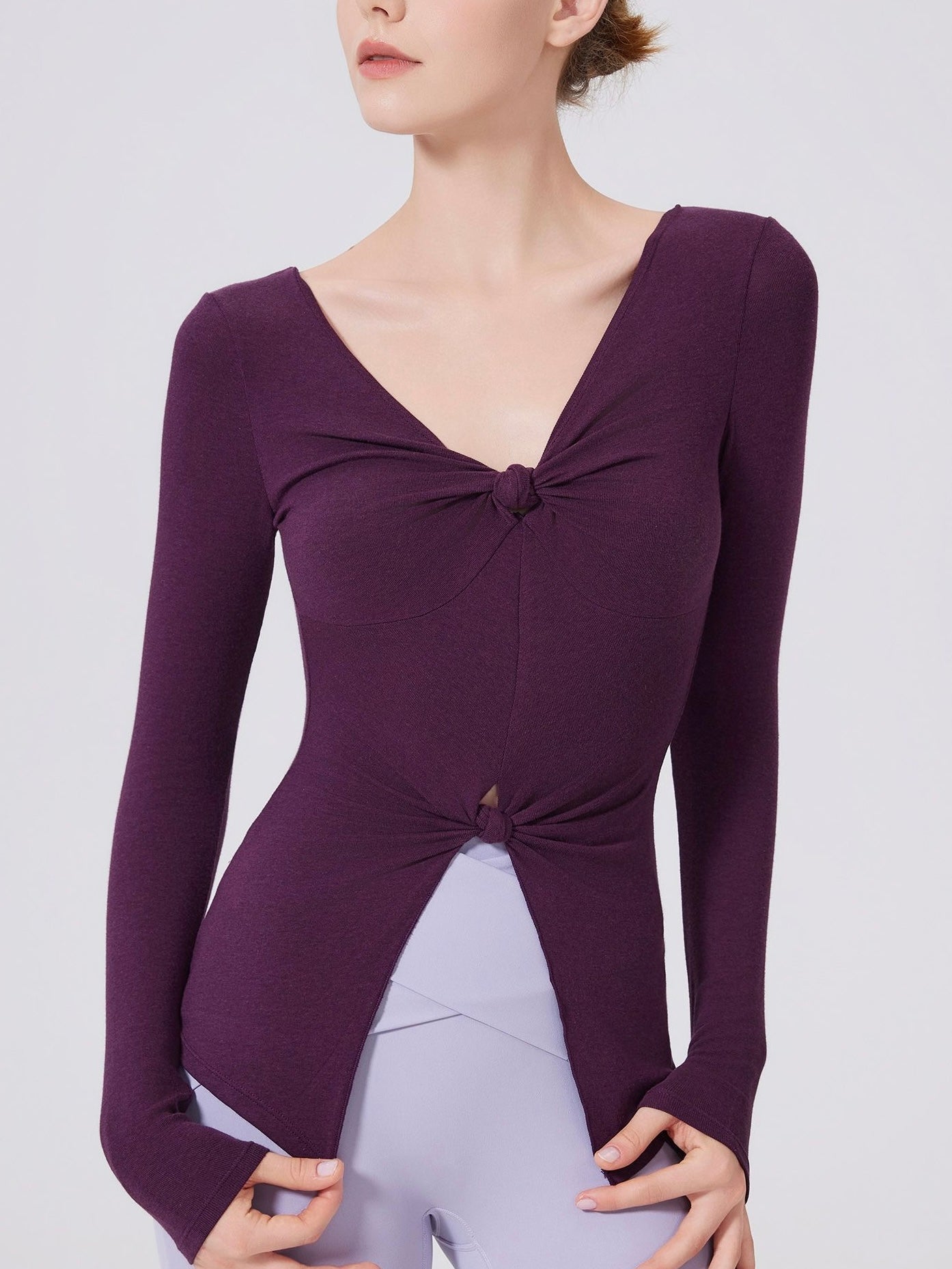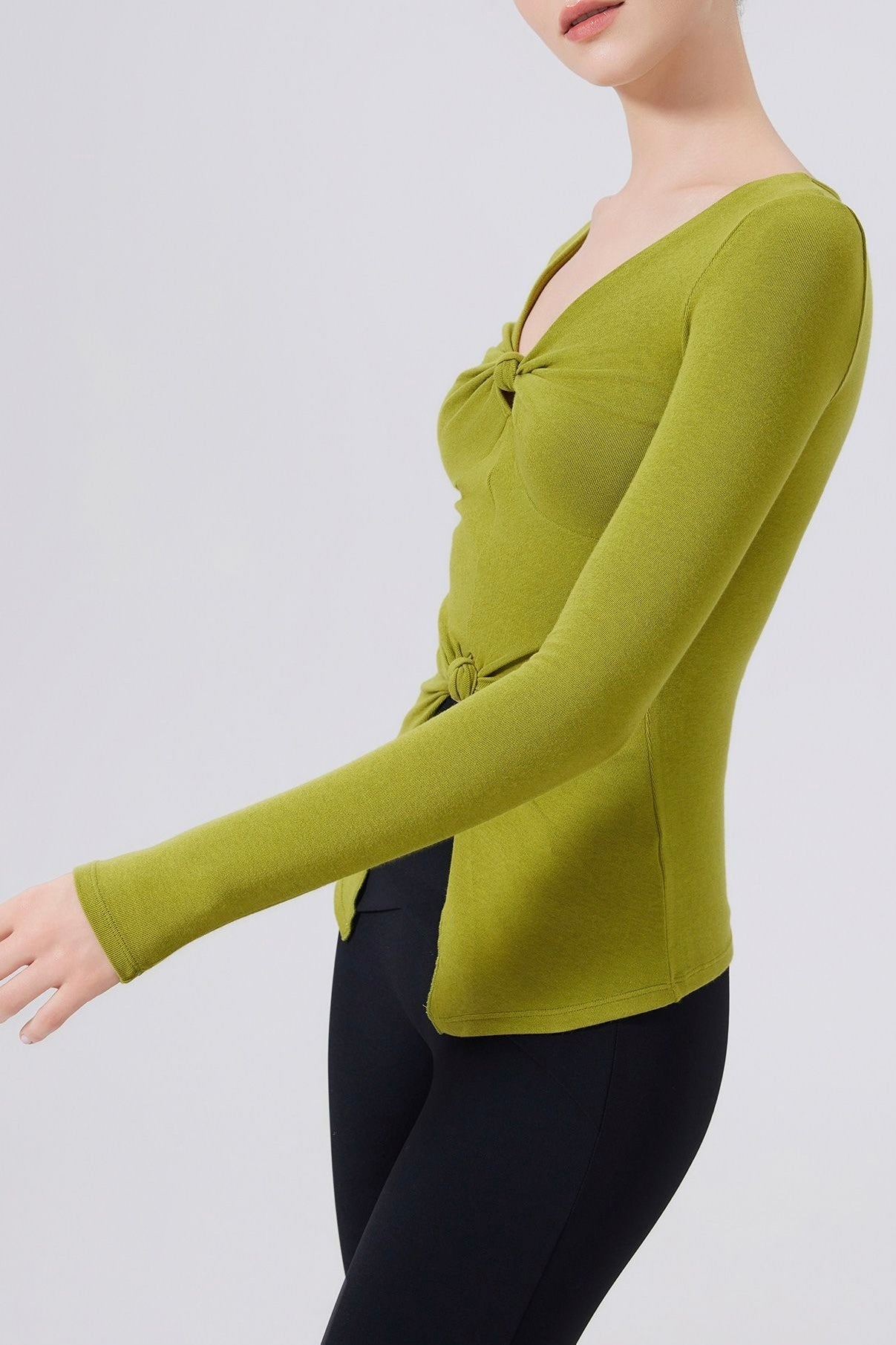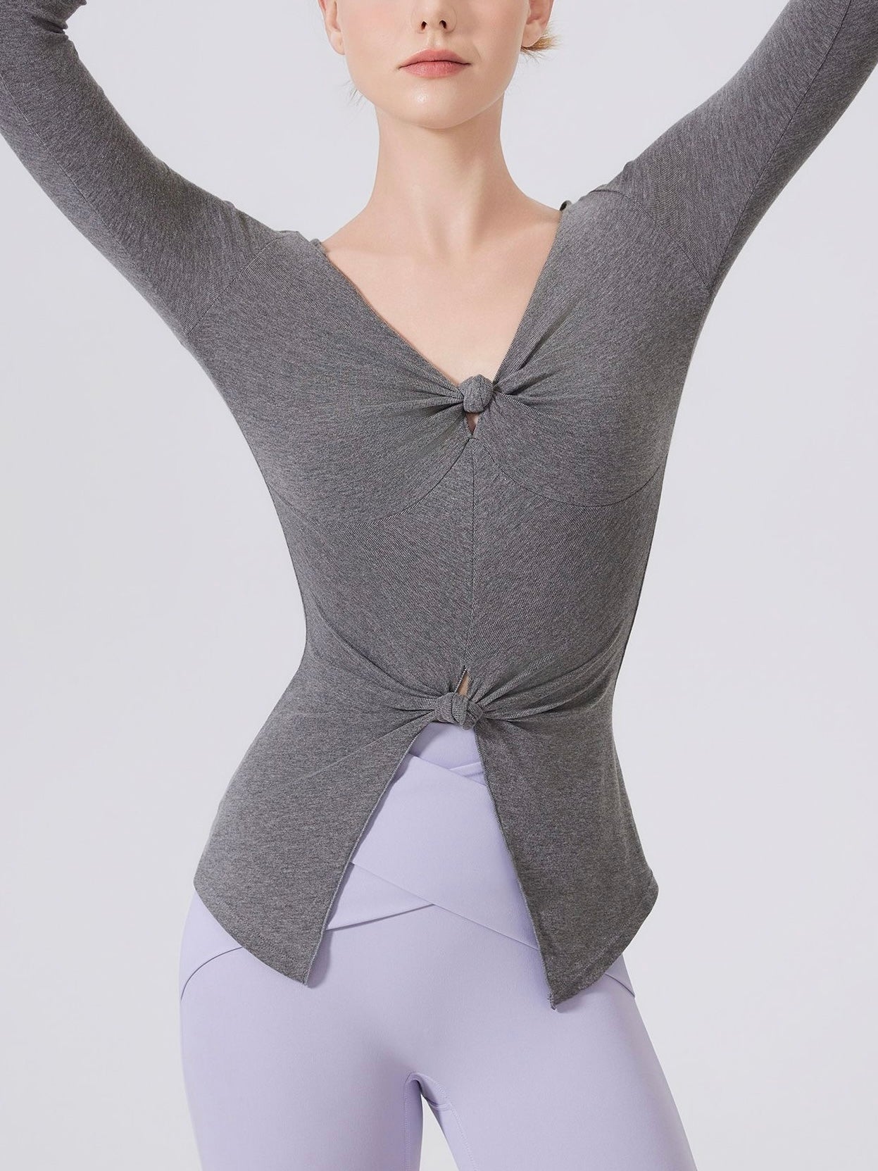 ウエストギャザーロングスリーブ体型カバーヨガ トップス 2399