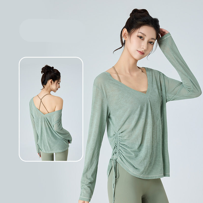 バックオープン2WAYゆったりヨガウェアトップス 2411