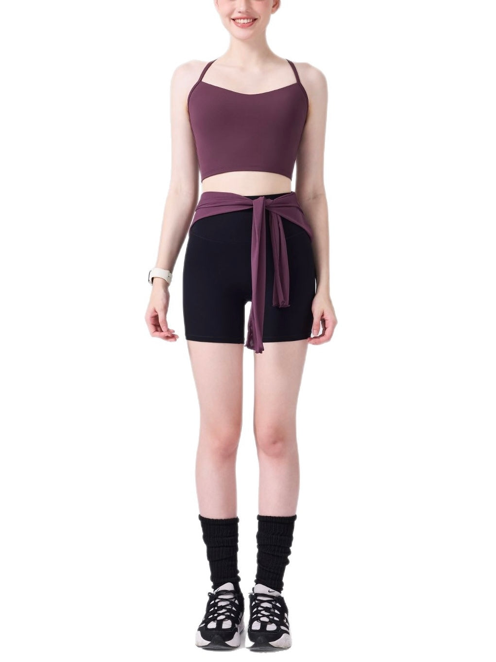 フェイクツー リボン メッシュ ヨガトップス 2416