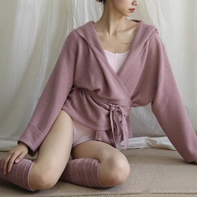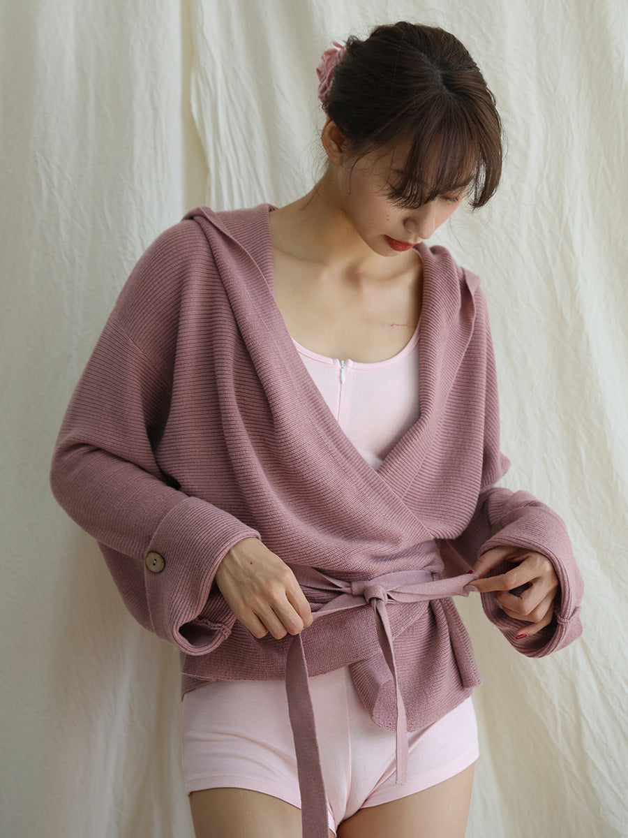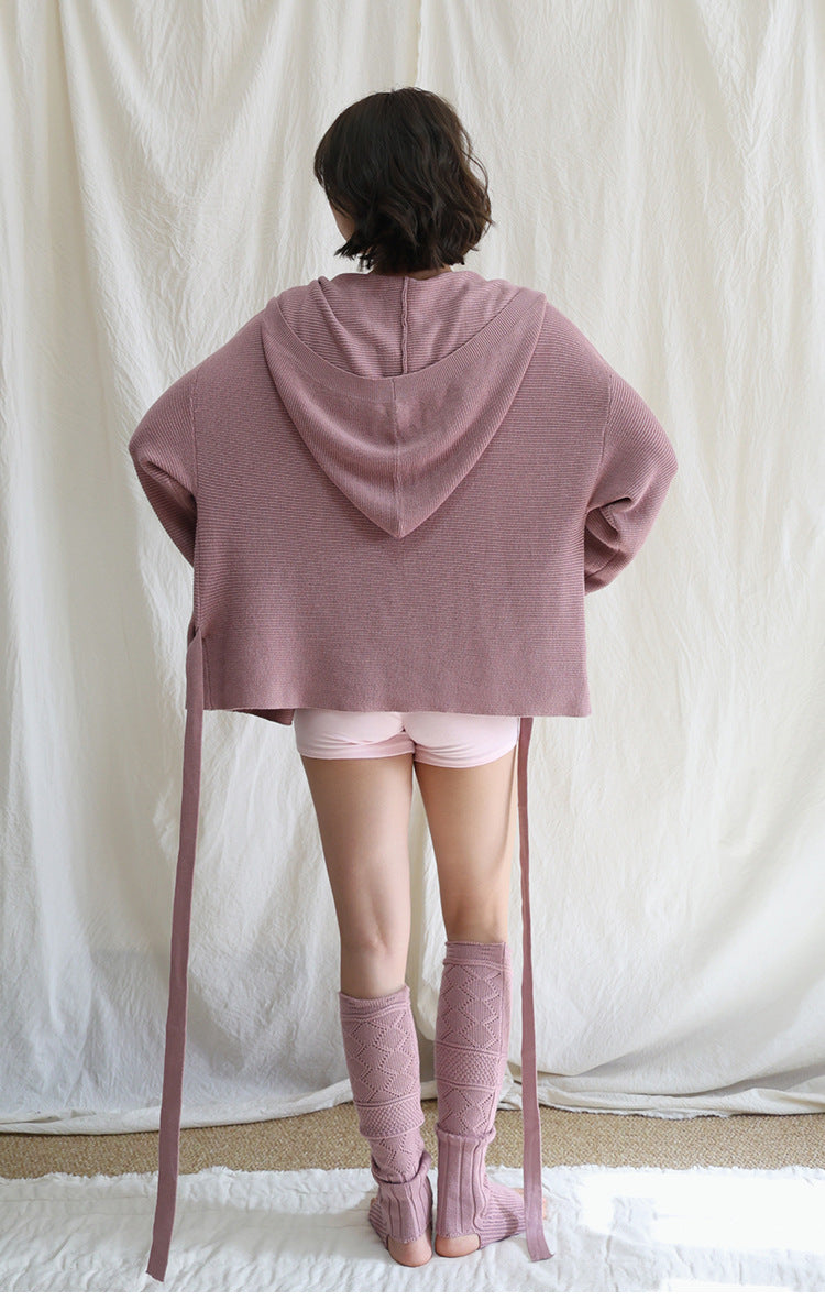 フード付きニットカーディガンヨガアウター 2422