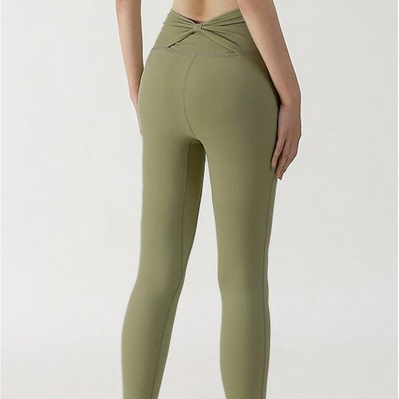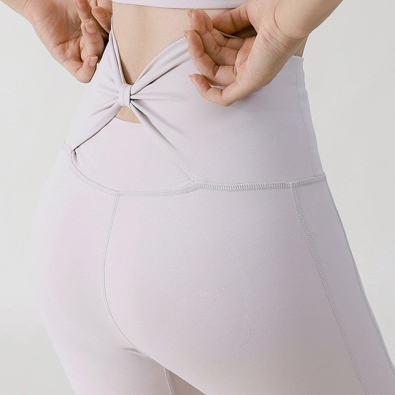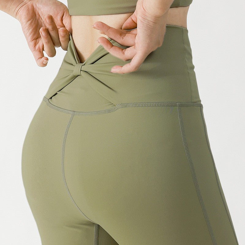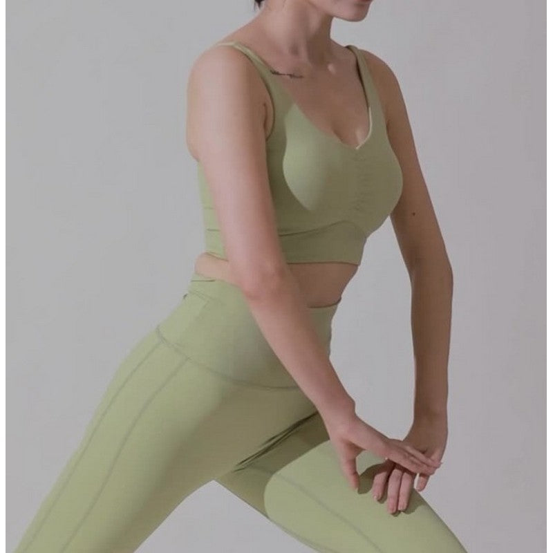 ハイウエスト仕様で、ショートトップスと合わせてもお腹が見えにくく、側屈や前屈の体勢でもお腹まわりを気にすることなくワークに集中できます。