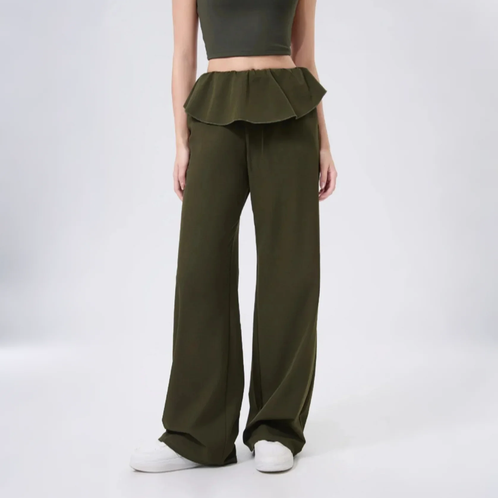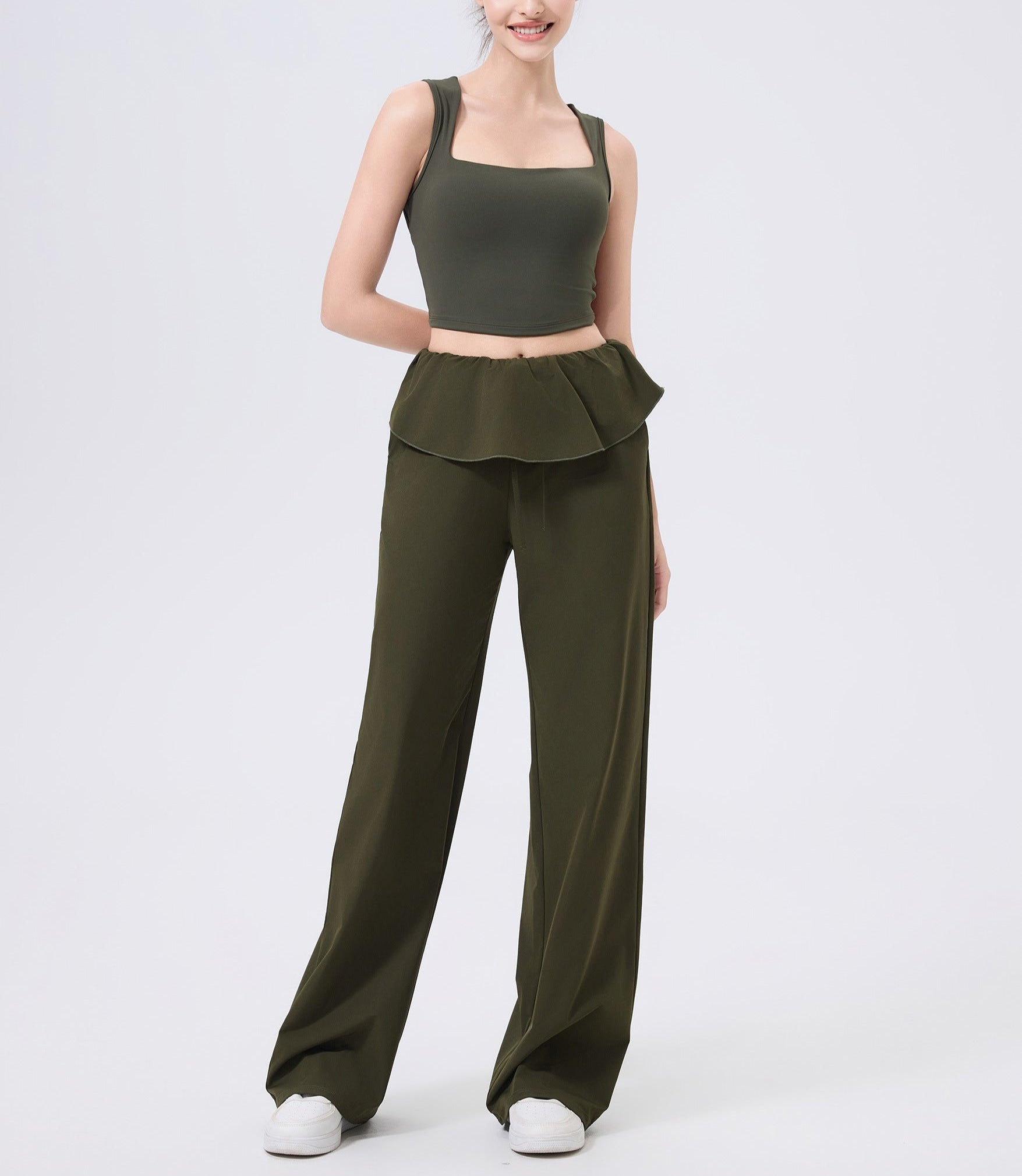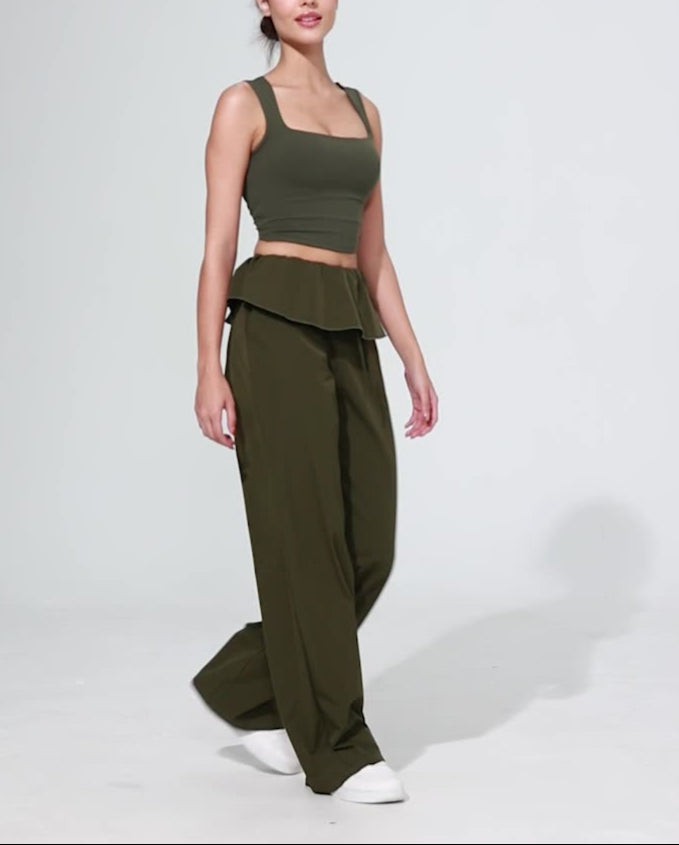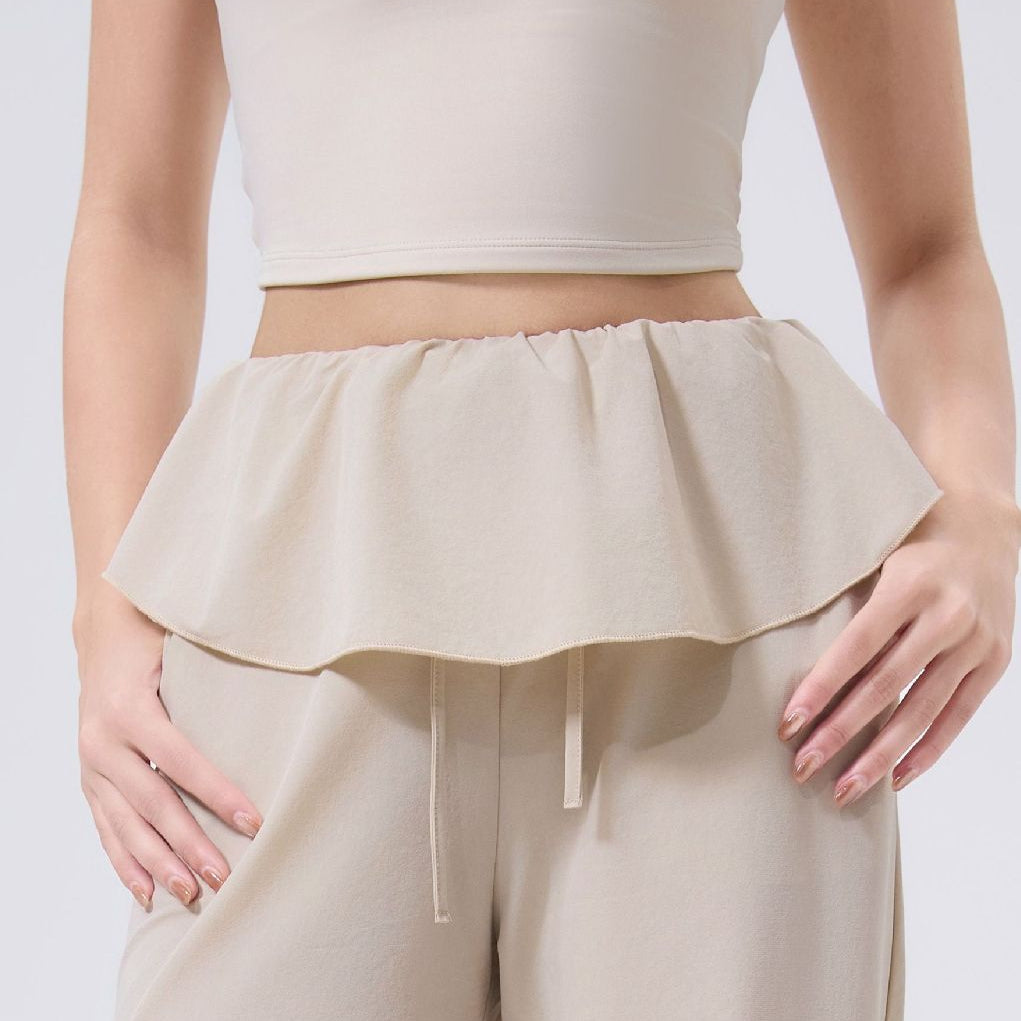 ドローストリングとフリルデザインのヨガパンツ 3093