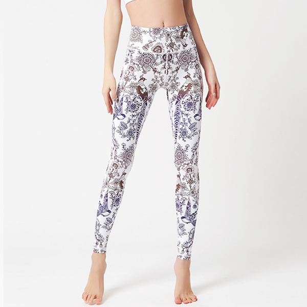 植物と鳥のプリントが前向きな心持ちにさせてくれる優しい印象のレギンス。