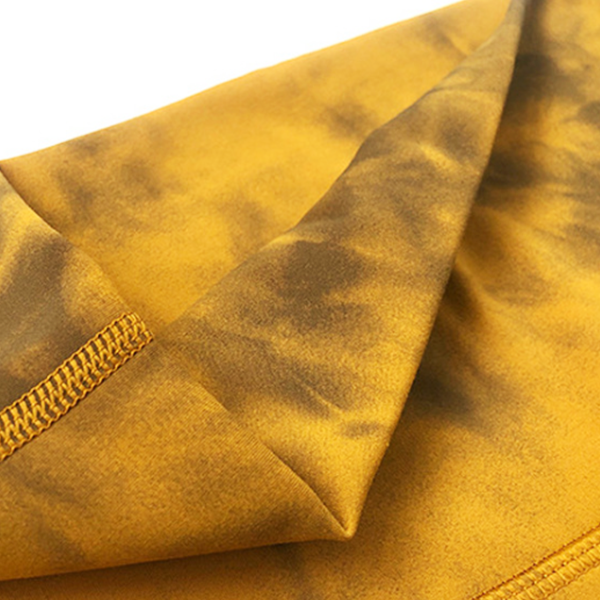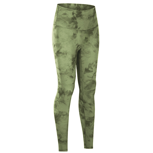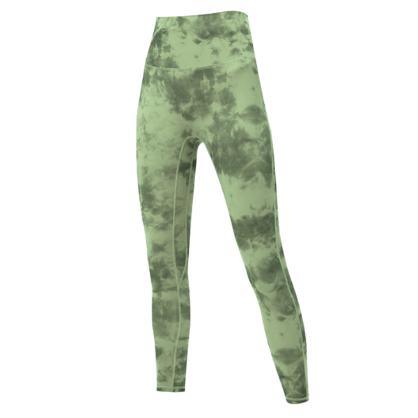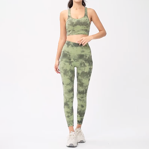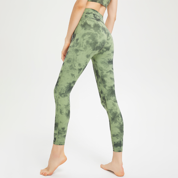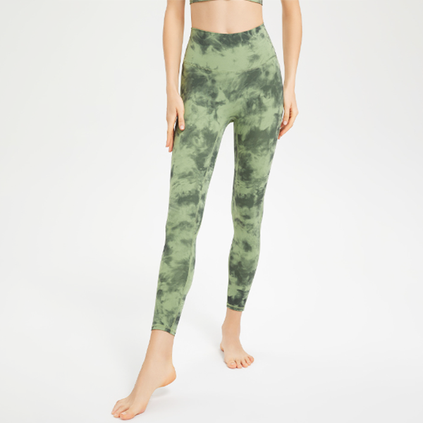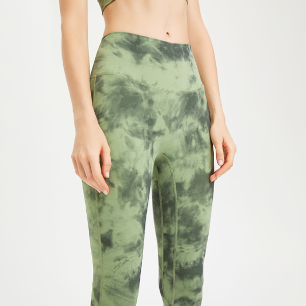 レギンスはハイウエスト仕様で、ショートトップスと合わせてもお腹が見えにくく、側屈や前屈の体勢でもお腹まわりを気にせず安心。