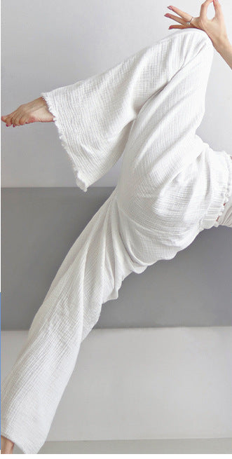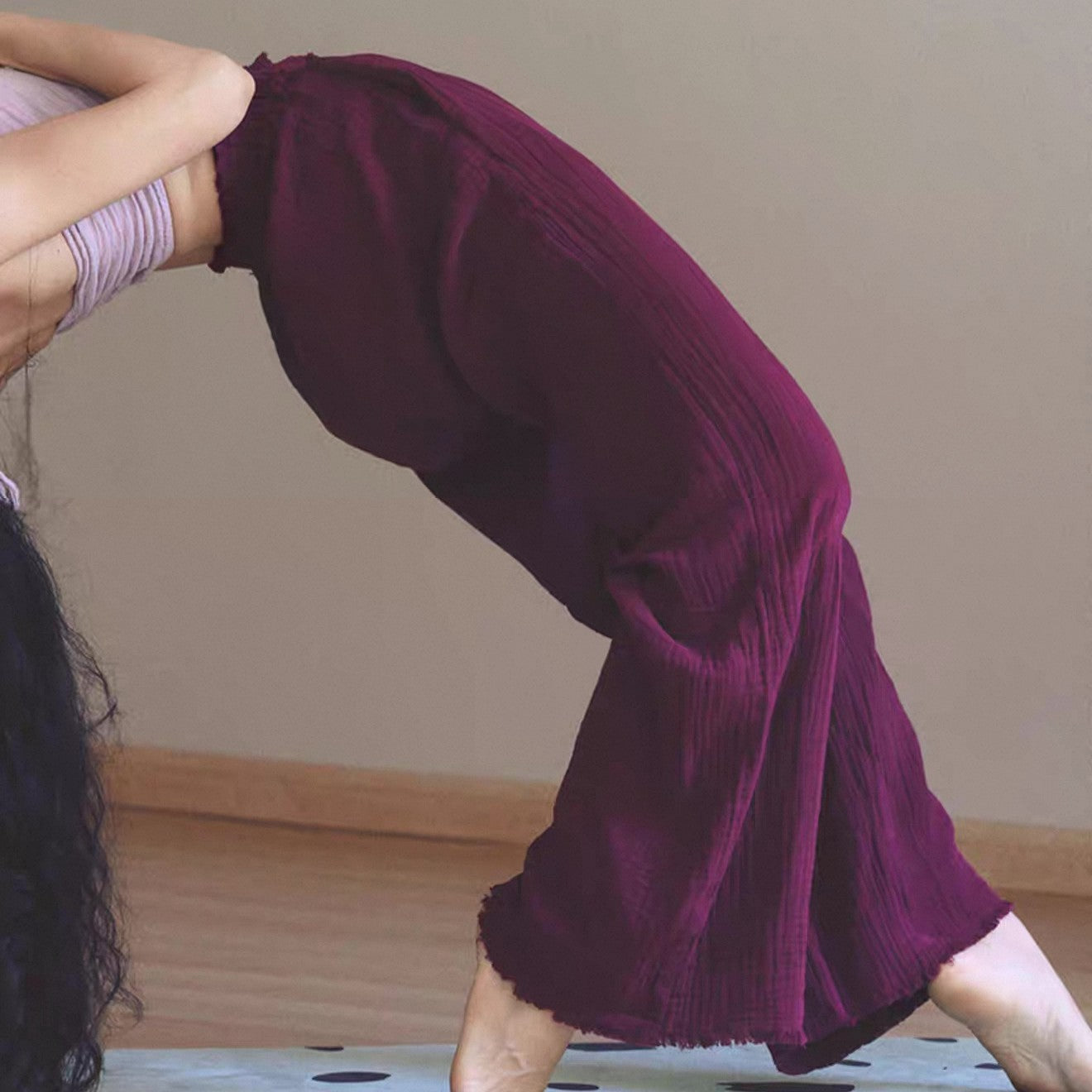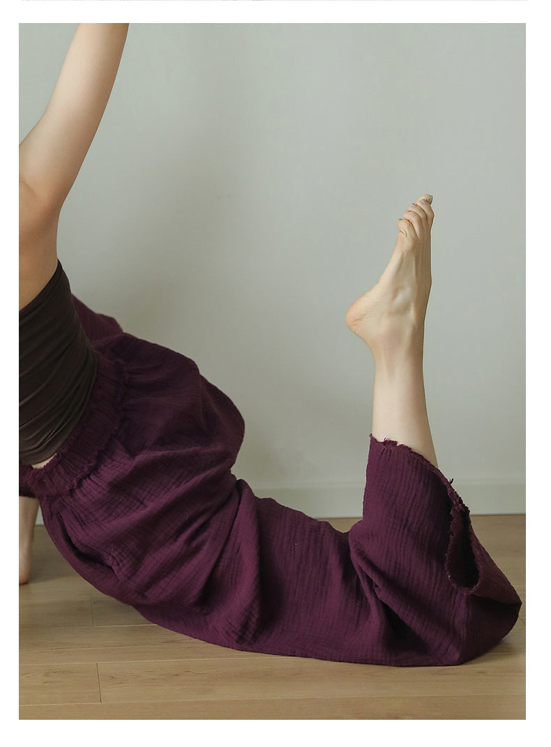 無地フィットネスワイドパンツピラティスロングパンツヨガパンツ 3141