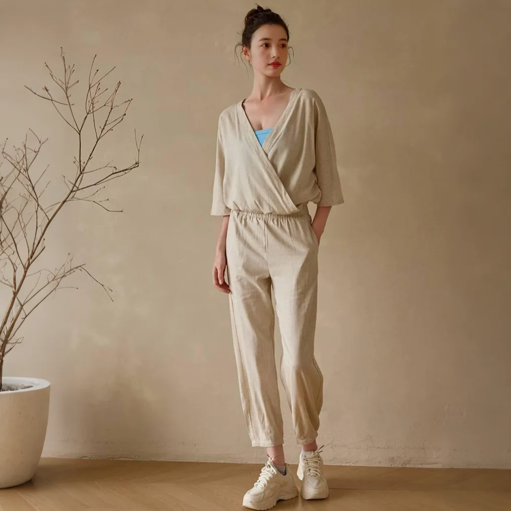 【新作】リネン素材のゆったりヨガセットアップ 4068