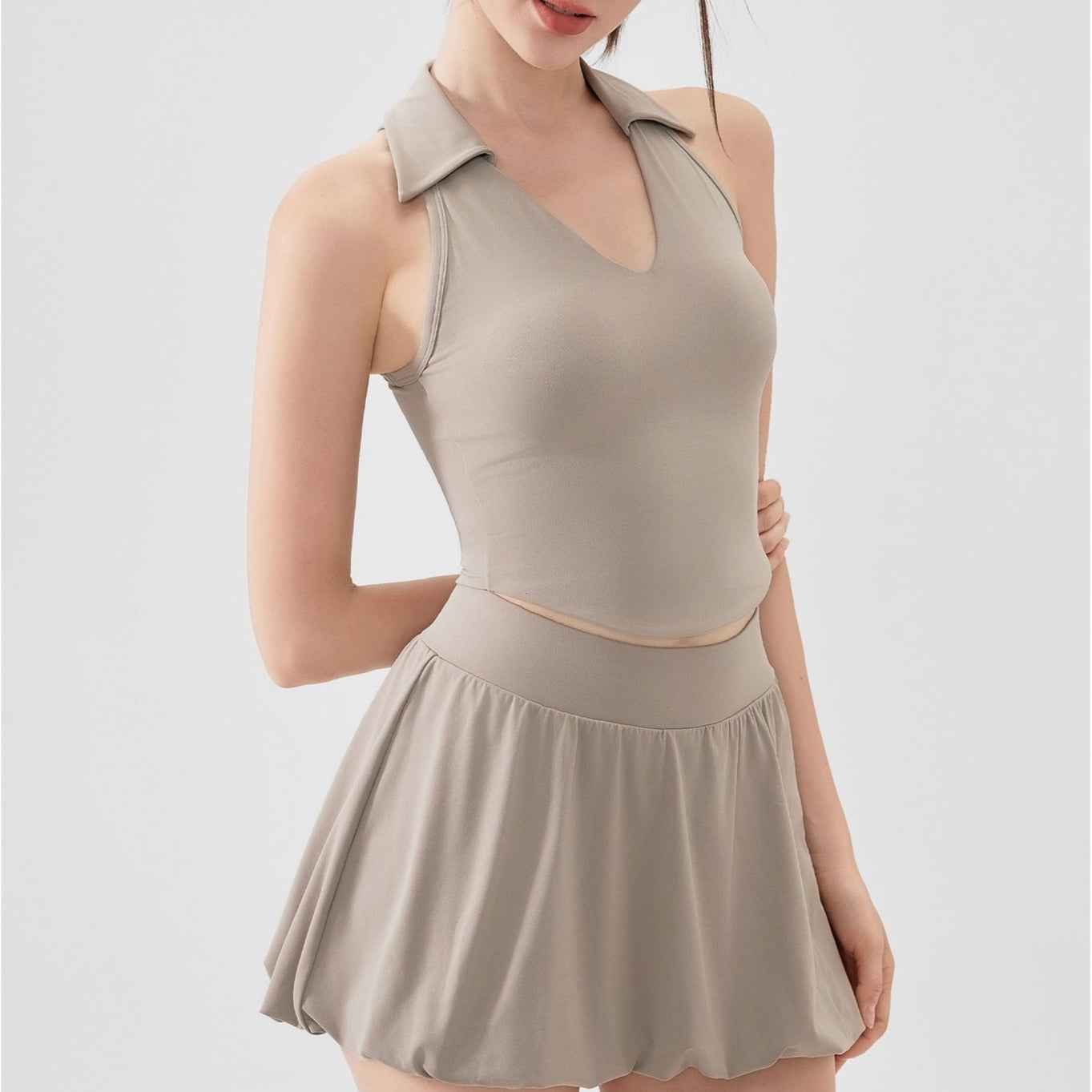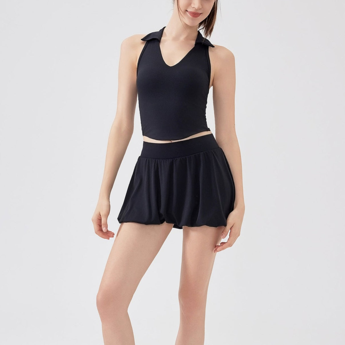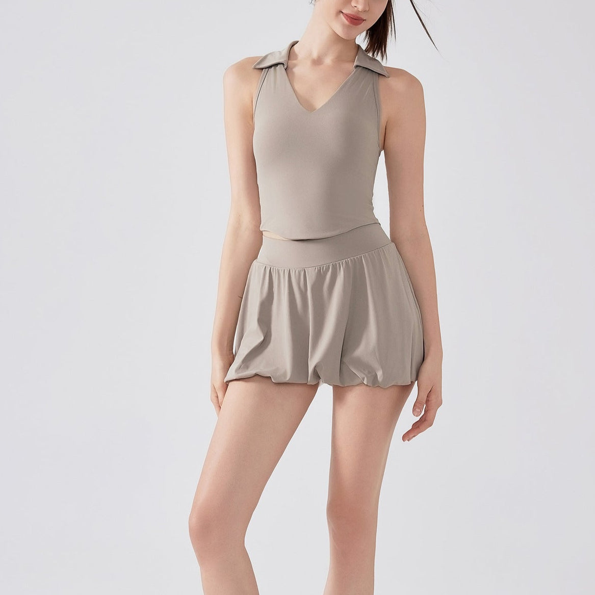 サイドギャザー杢シアーヨガタンク 2204