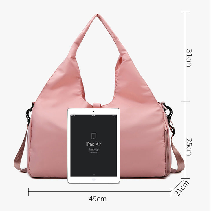 持ち手の適度な幅とクッション性が、肩や腕への負担を軽減。